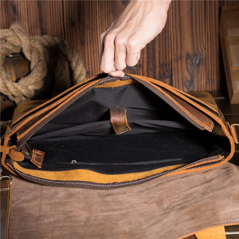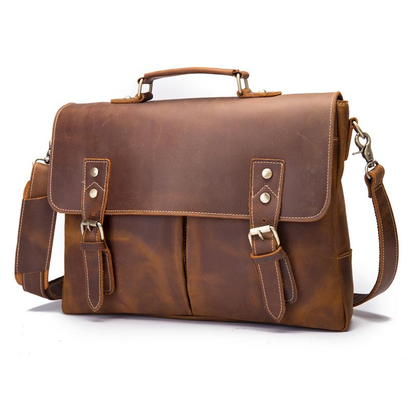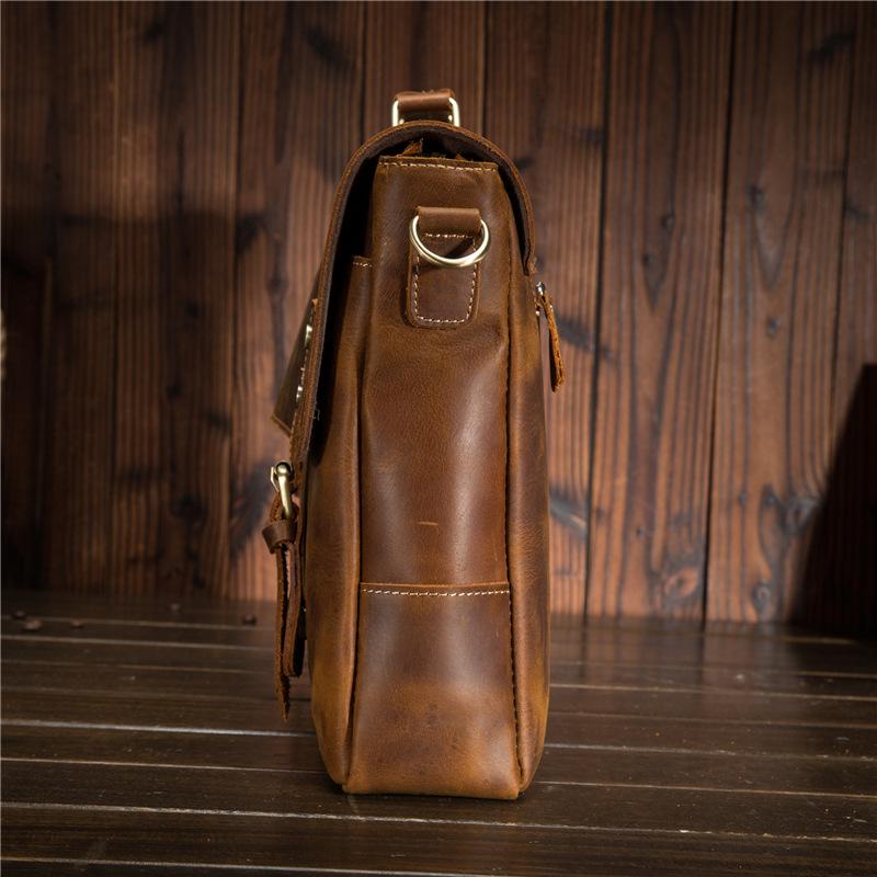 Design: Vintage Brown Leather Mens Briefcase 13inch Laptop Bag Business Bag Handbag For Men
