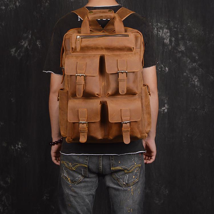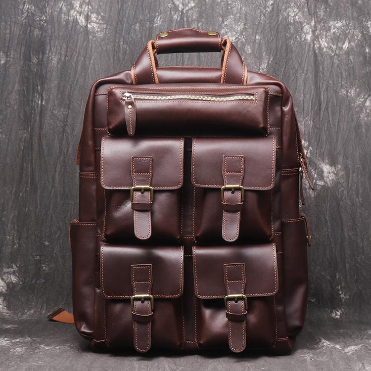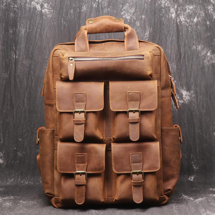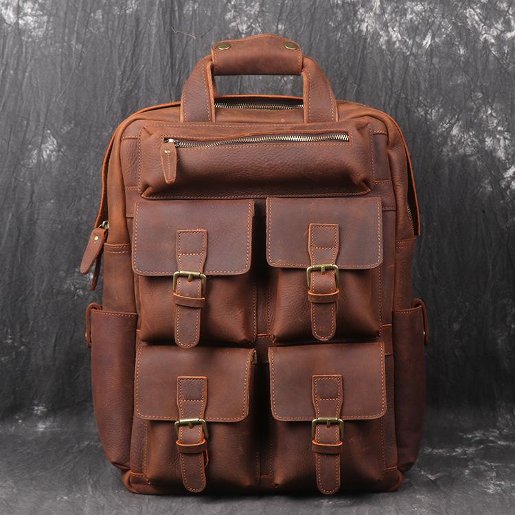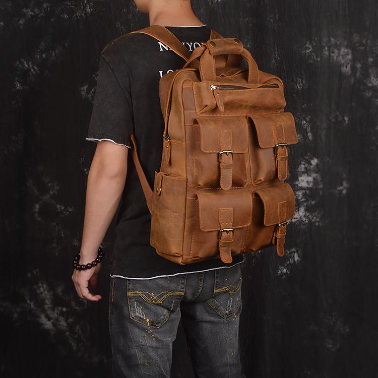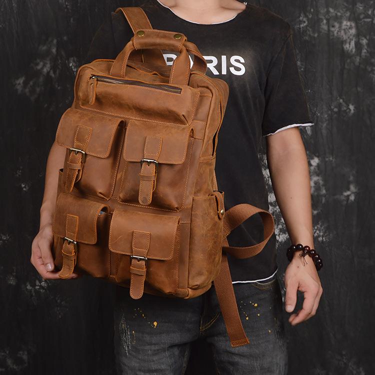 Design: Vintage Cool Leather Men's 15inch Laptop Backpack Travel Backpack School Backpack For Men