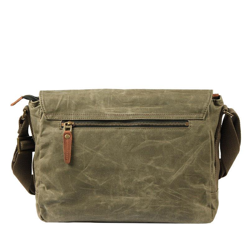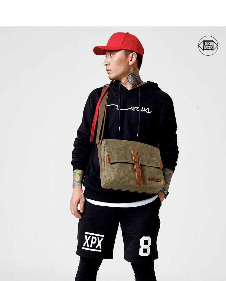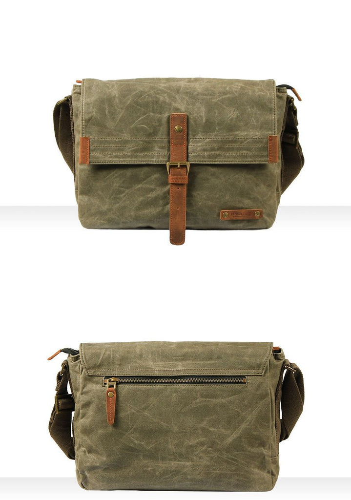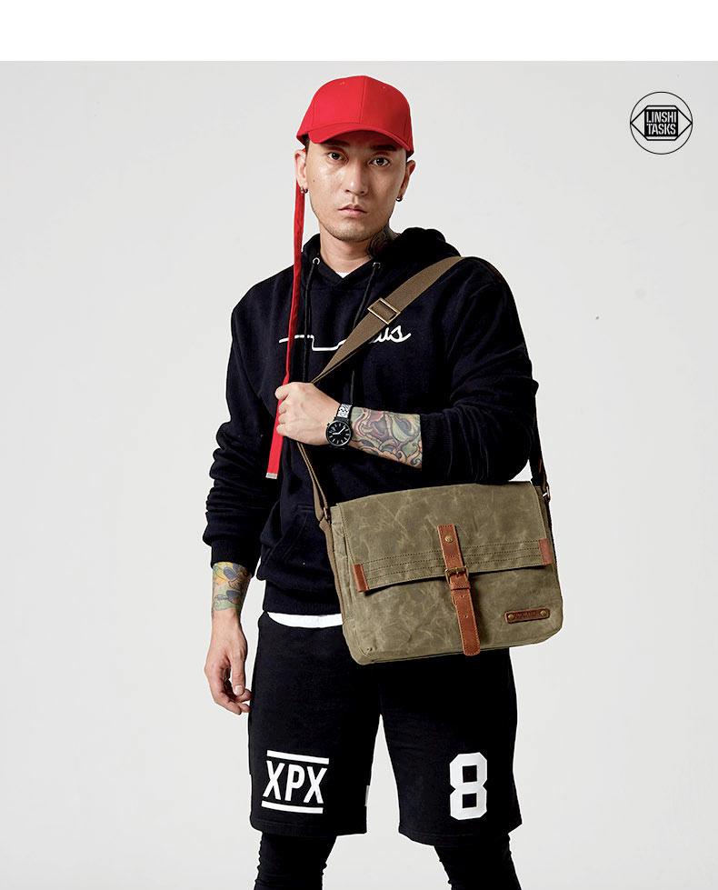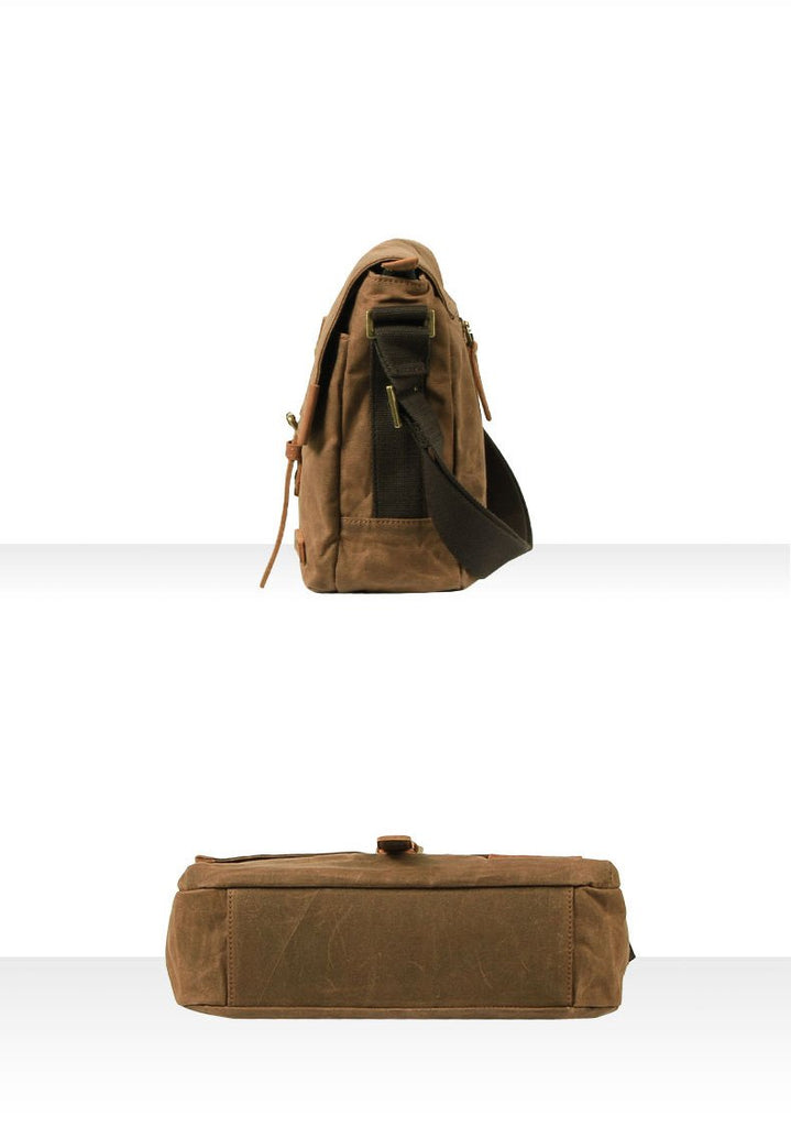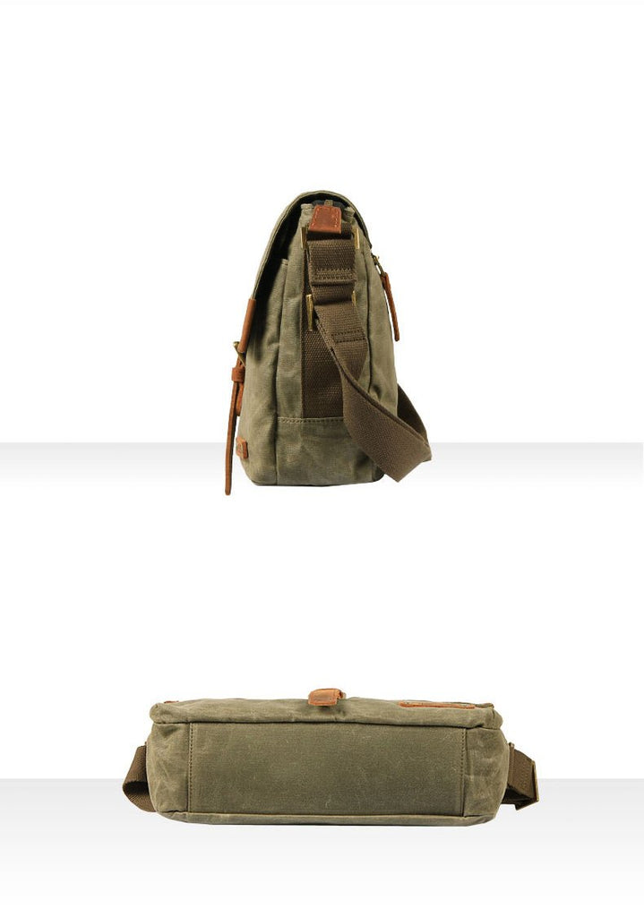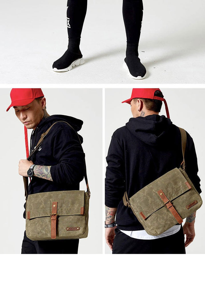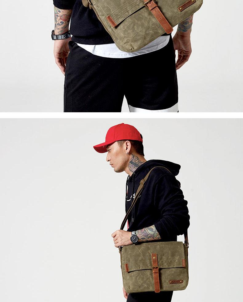 Style: Fashion Waxed Canvas Leather Mens Army Green Side Bag Messenger Bags Brown Casual Canvas Courier Bag for Men