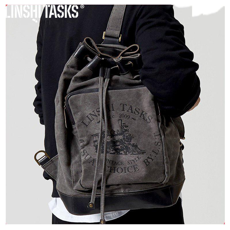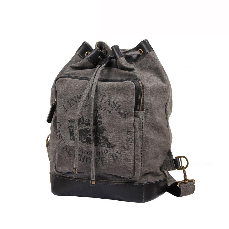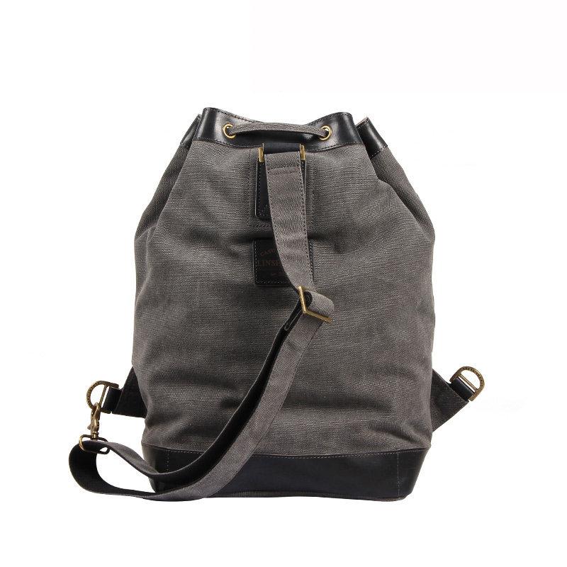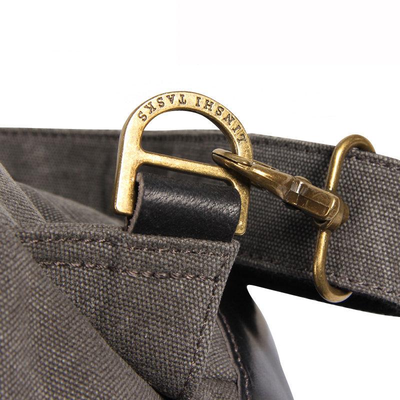 Design: Fashion Canvas Leather Mens Bucket Sling Bag Sling Pack Khaki Canvas Sling Backpack for Men