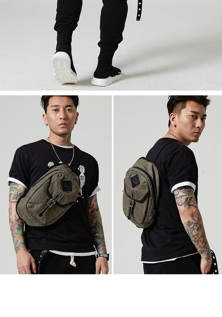 Design: Fashion Waxed Canvas Mens Sling Bag Canvas Sling Pack Blue Canvas Sling Backpack for Men