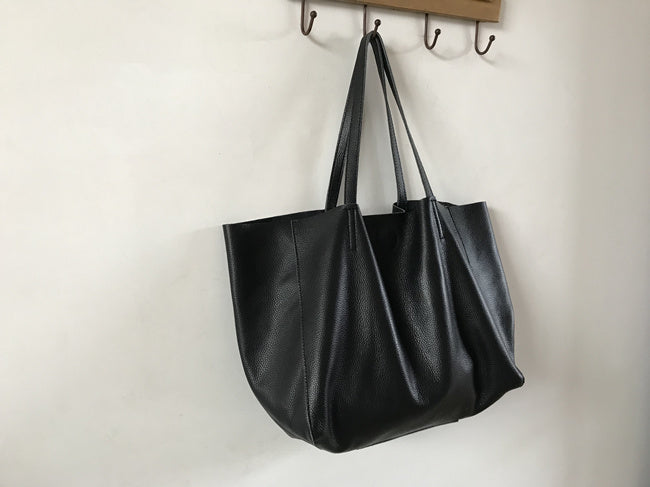 Fashion Womens Black Leather Oversize Tote Bags Black Shoulder Tote Bag Handbag Tote For Women