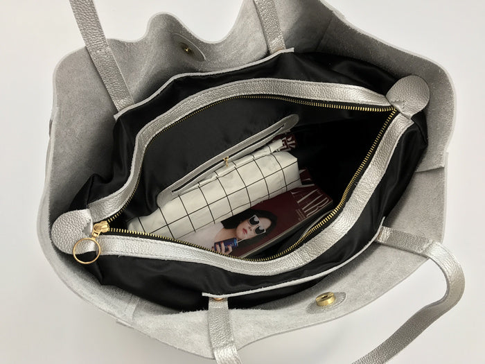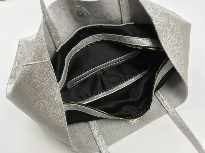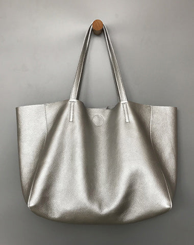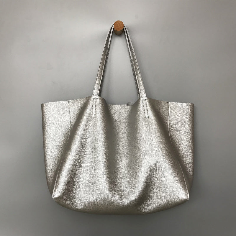 Style: Fashion Womens Silver Leather Oversize Tote Bag Black Shoulder Tote Bag Handbag Tote For Women