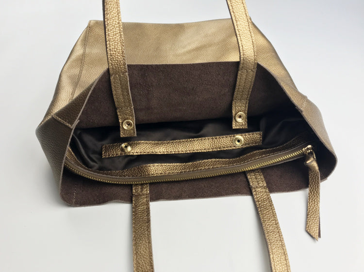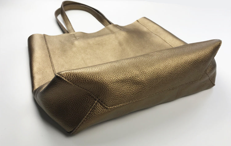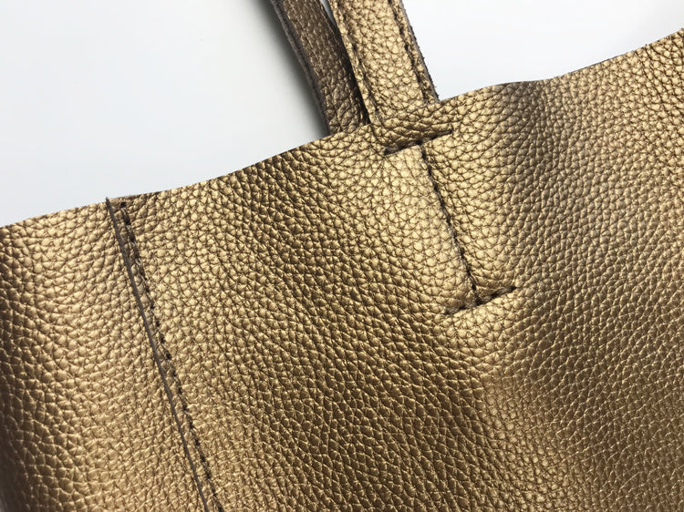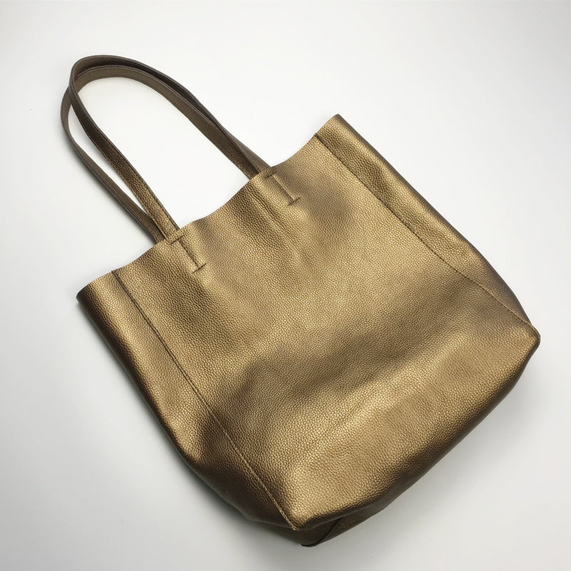 Design: Fashion Womens Bronze Silver Leather Vertical Tote Bags Bronze Silver Shoulder Tote Bag Handbag Tote For Women