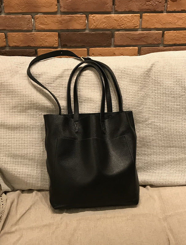 Style: Fashion Womens Brown Leather Vertical Tote Bag Black Shoulder Tote Bag Handbag Tote For Women