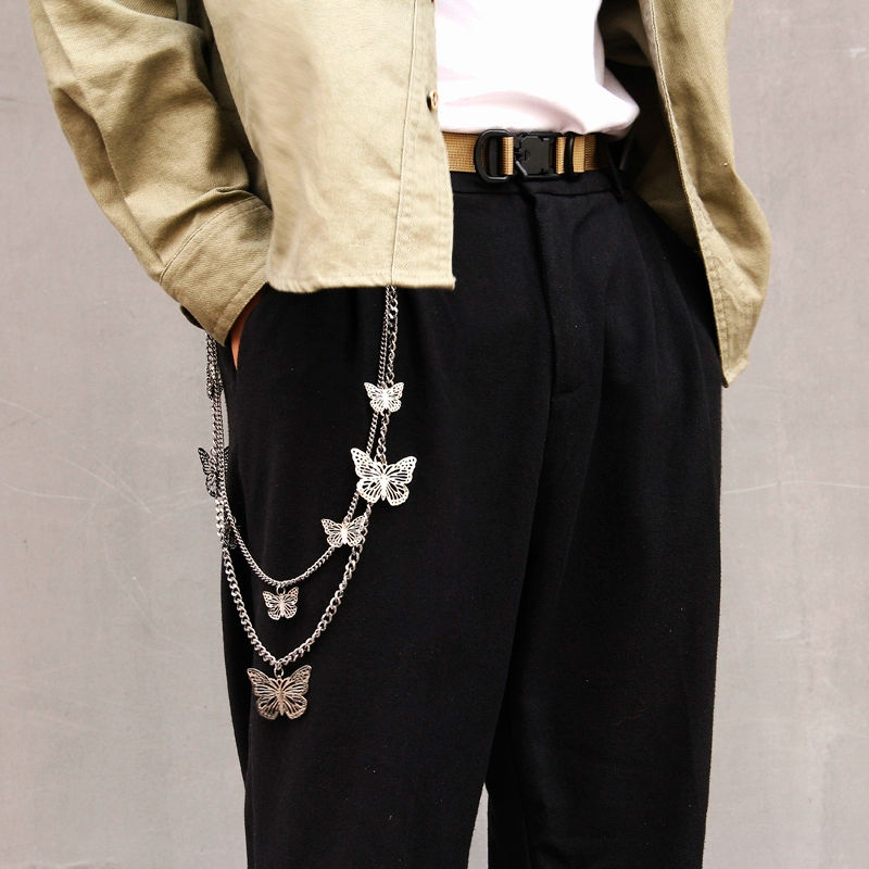 Style: Fashion Womens Butterfly Jeans Chain Silver Double Layers Butterfly Wallet Chains Panties Chains For Men