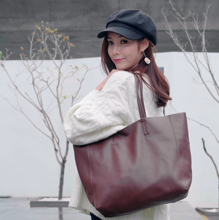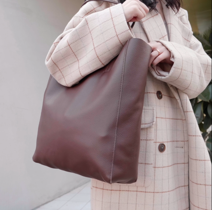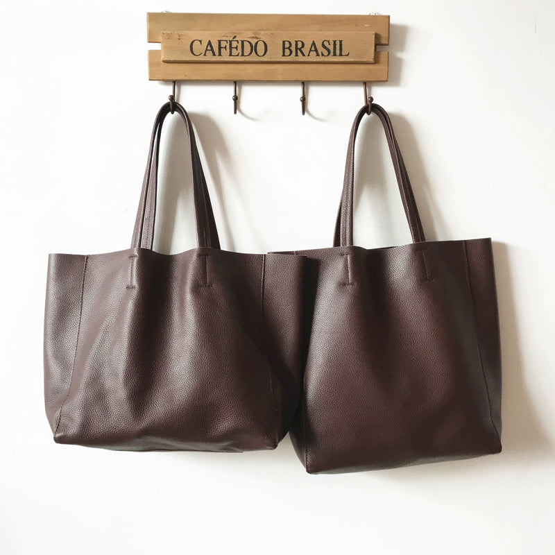 Design: Fashion Womens Coffee Leather Oversize Tote Bag Coffee Shoulder Tote Bag Handbag Tote For Women