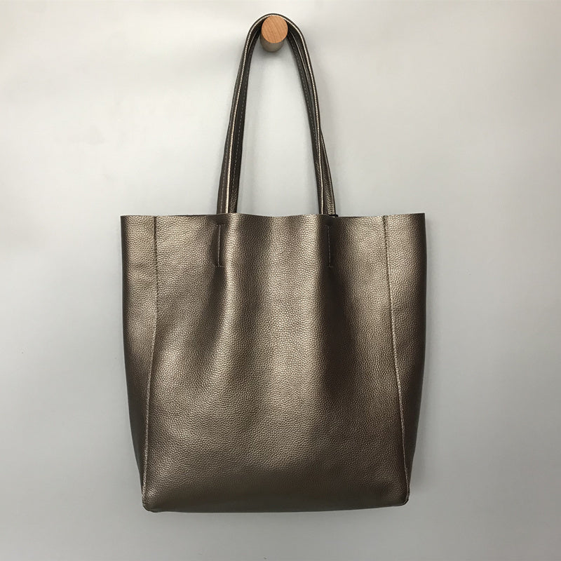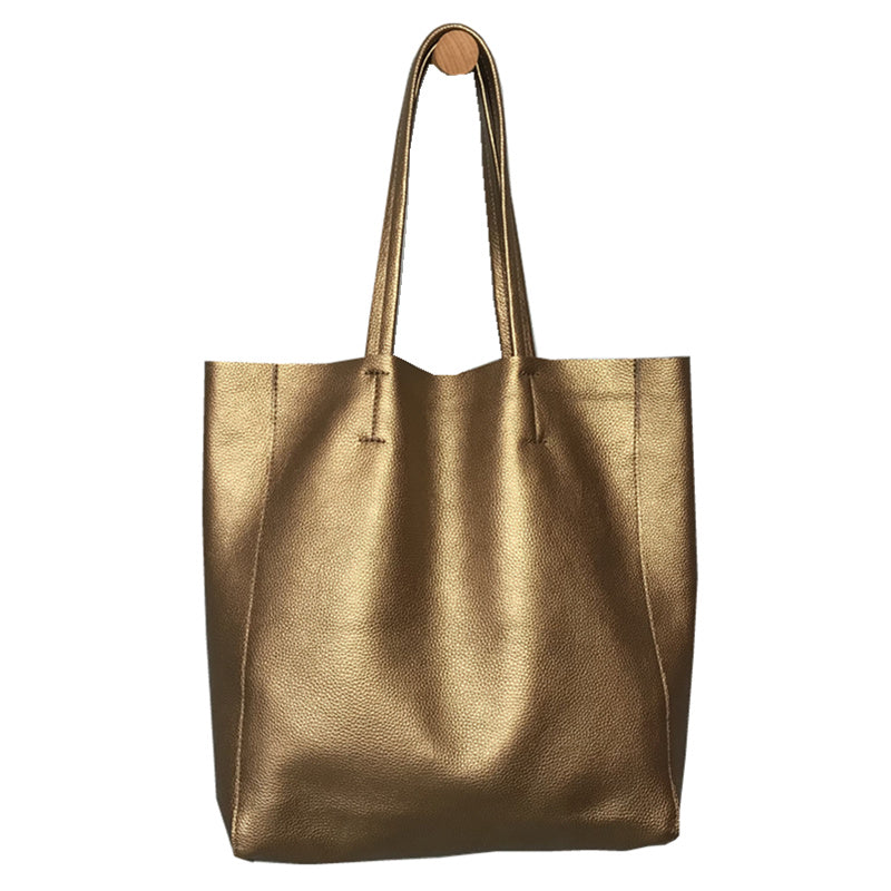 Style: Fashion Womens Gold Leather Oversize Tote Bags Bronze Shoulder Tote Bag Handbag Tote For Women