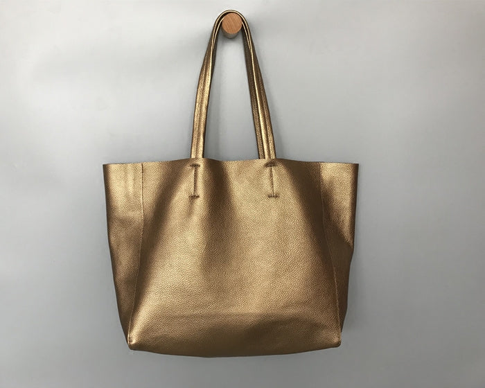 Design: Fashion Womens Gold Leather Oversize Tote Bags Bronze Shoulder Tote Bag Handbag Tote For Women