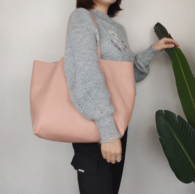 Design: Fashion Womens Pink Leather Oversize Tote Bag Pink Shoulder Tote Bag Pink Handbag Tote For Women