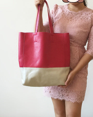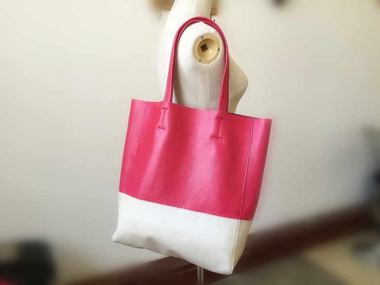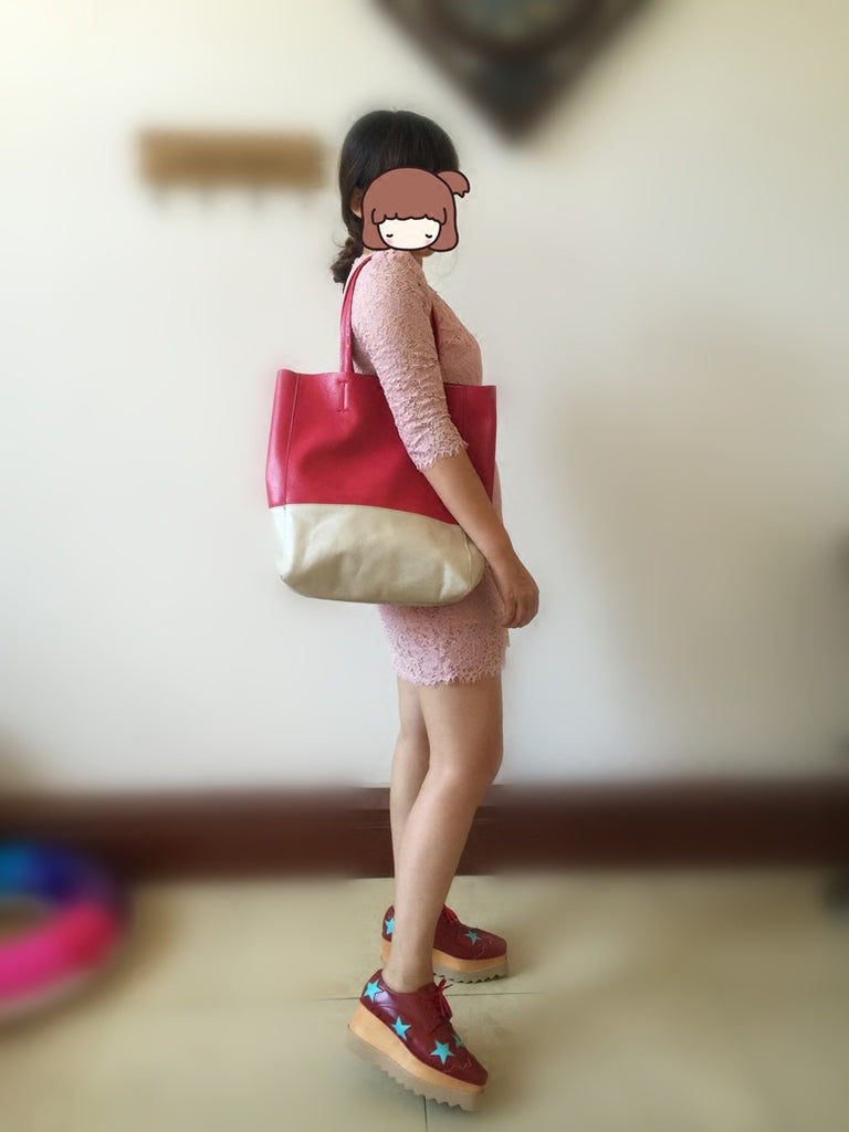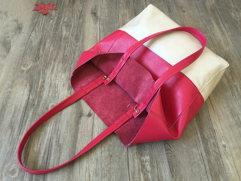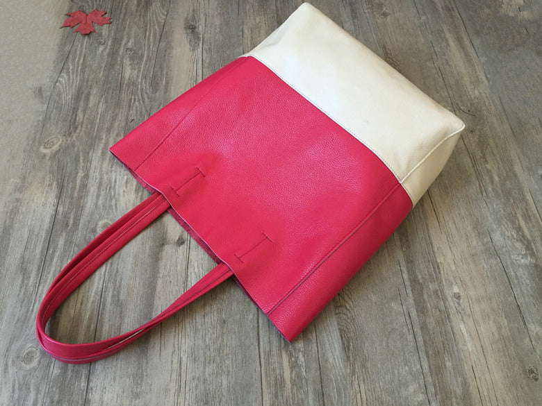Style: Fashion Womens Rose Red White Leather Vertical Tote Bags Rose Red White Shoulder Tote Bag Handbag Tote For Women