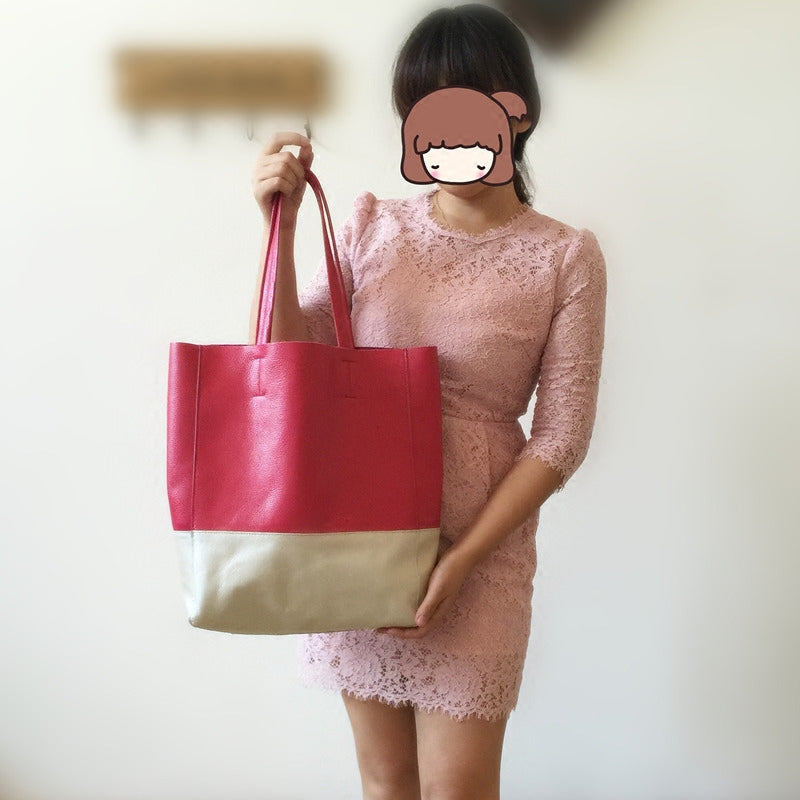 Design: Fashion Womens Rose Red White Leather Vertical Tote Bags Rose Red White Shoulder Tote Bag Handbag Tote For Women