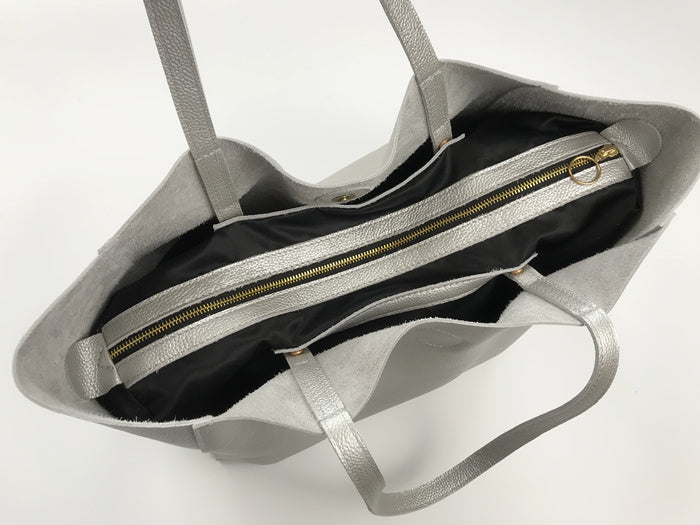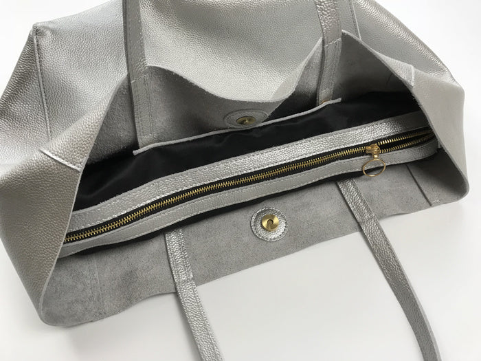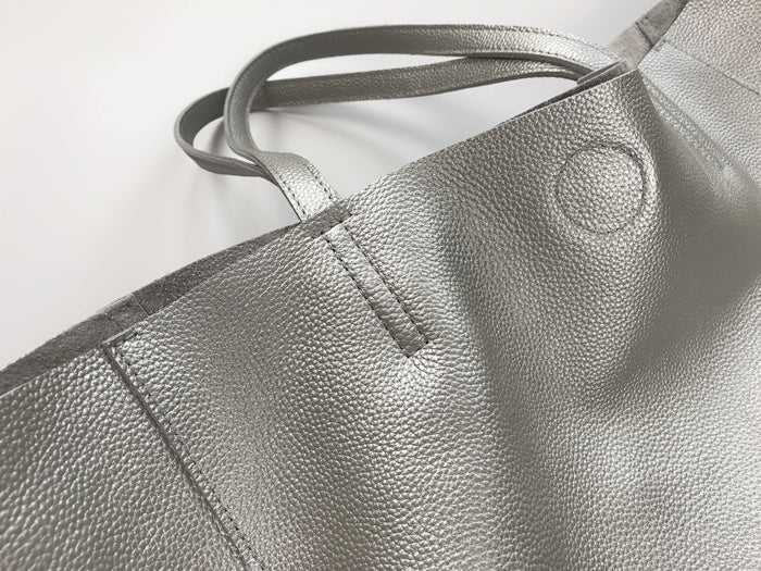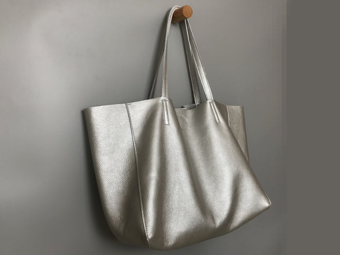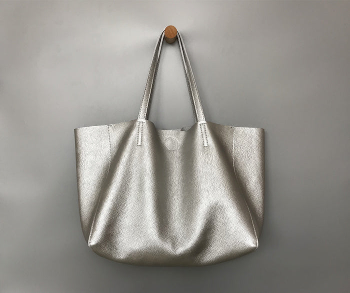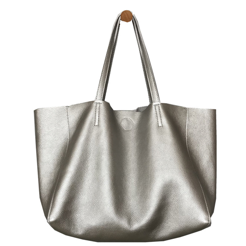 Style: Fashion Womens Silver Leather Oversize Tote Bag Black Shoulder Tote Bag Handbag Tote For Women