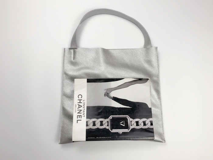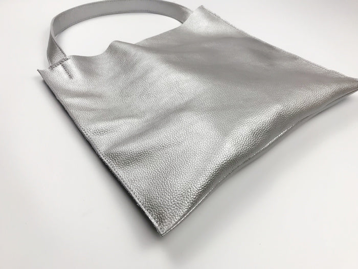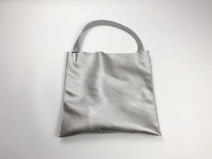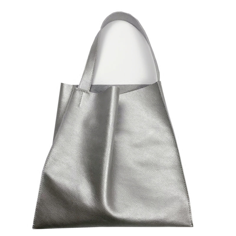 Design: Fashion Womens Silver Leather Vertical Tote Bag Silver Shoulder Tote Bags Handbag Tote For Women