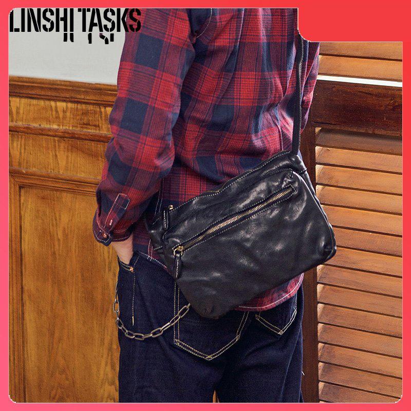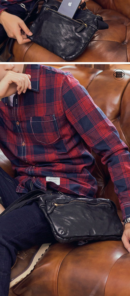 Design: Fashionable Black Leather Mens Dark Brown Side Bag Messenger Bags Casual Shoulder Bags for Men