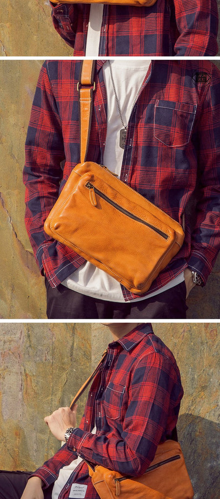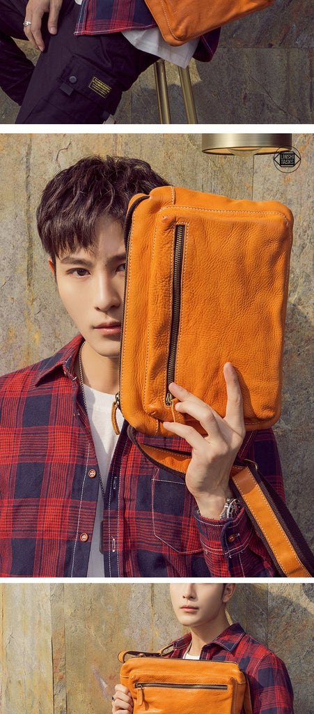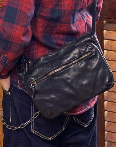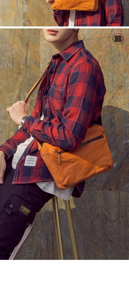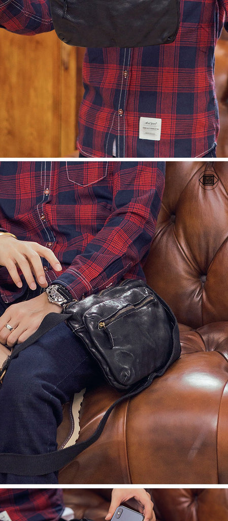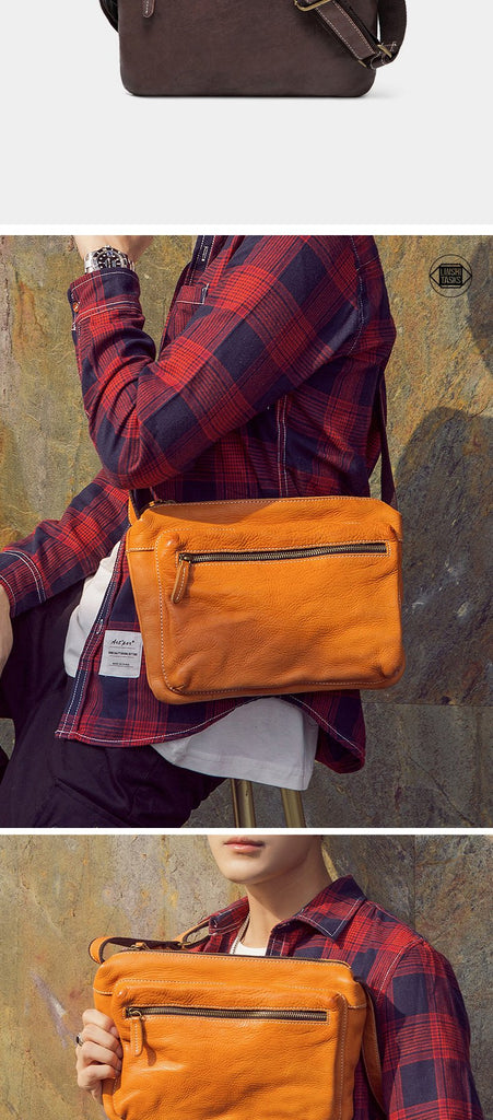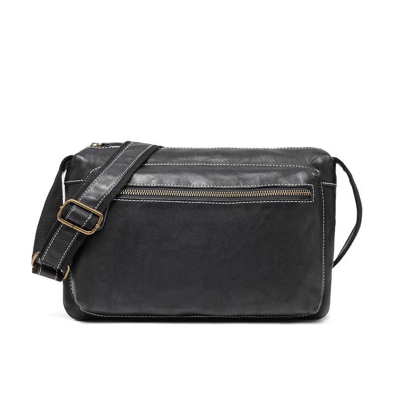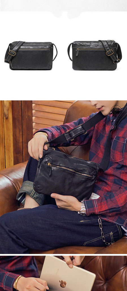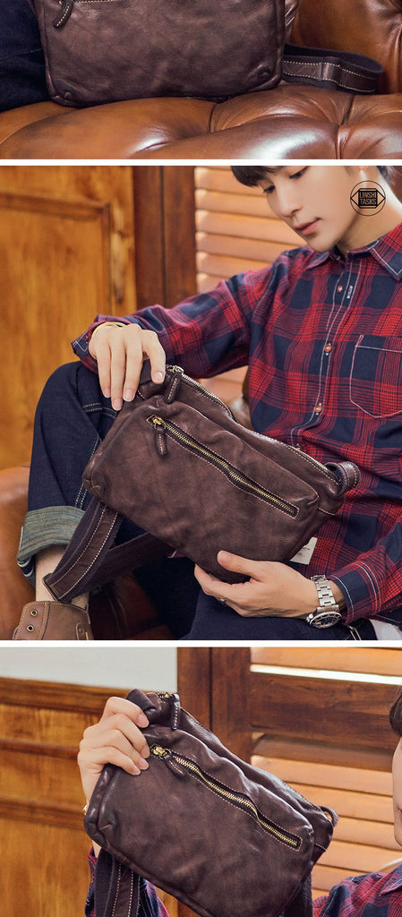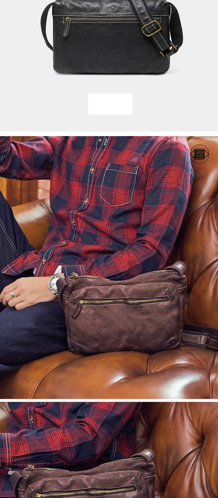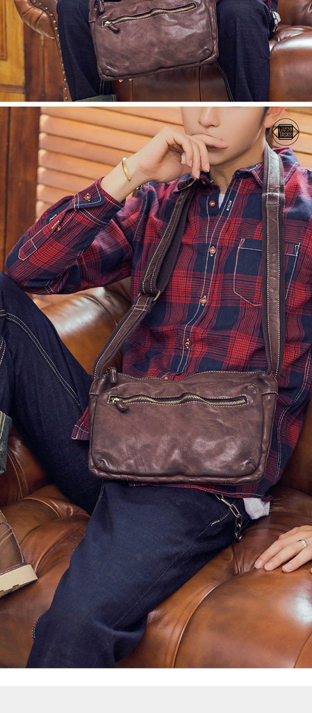 Style: Fashionable Black Leather Mens Dark Brown Side Bag Messenger Bags Casual Shoulder Bags for Men