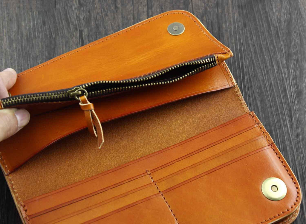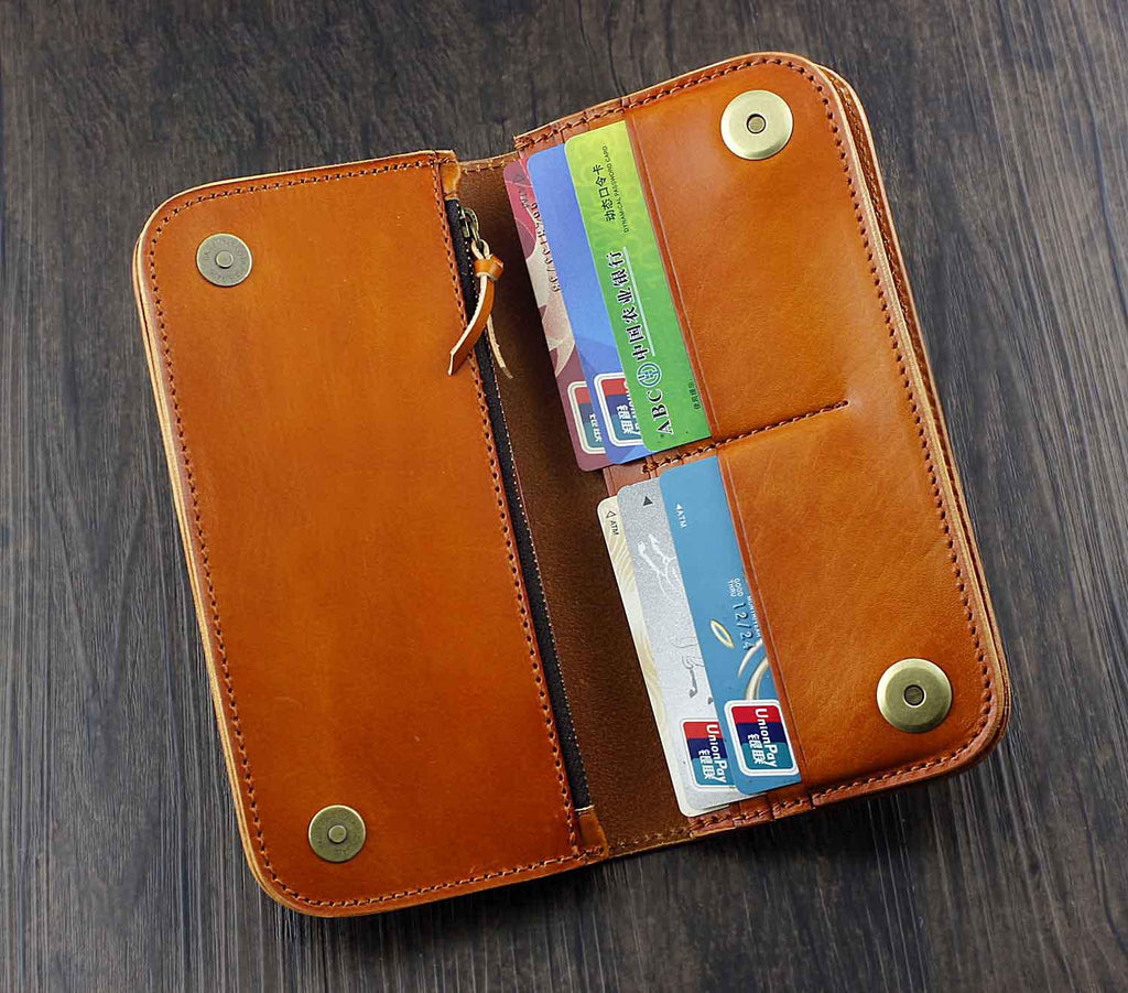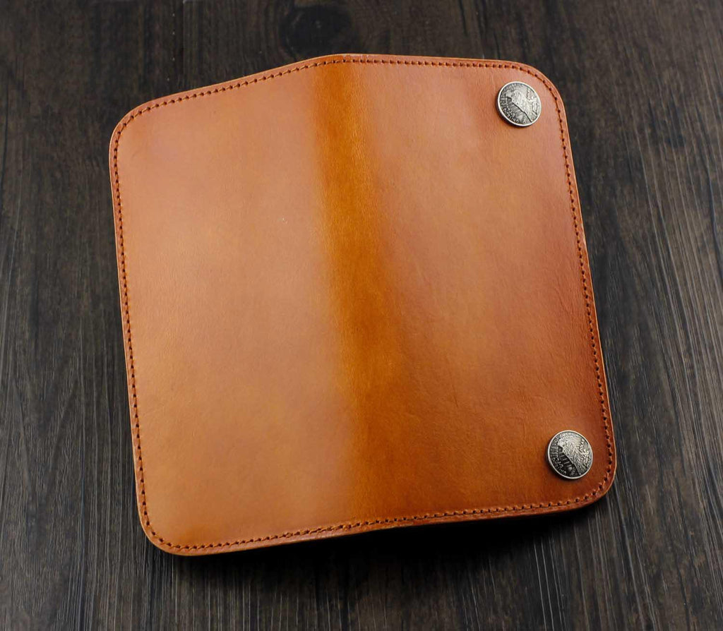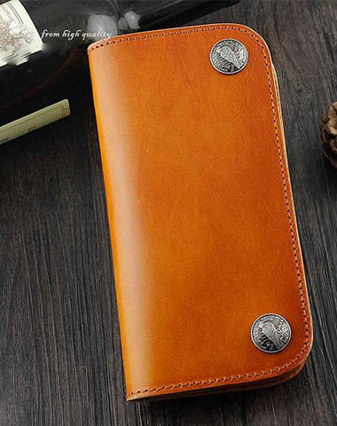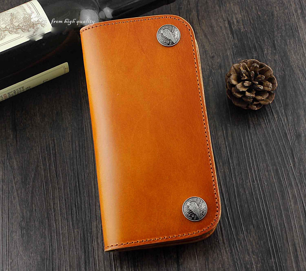 Design: Cool Brown Leather Men's Biker Long Wallet Bifold Long Wallet For Men