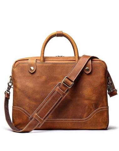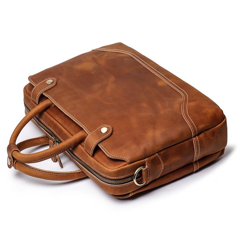 Design: Vintage Brown Leather Men's Professional Briefcase 15‘’ Computer Briefcase Handbag For Men
