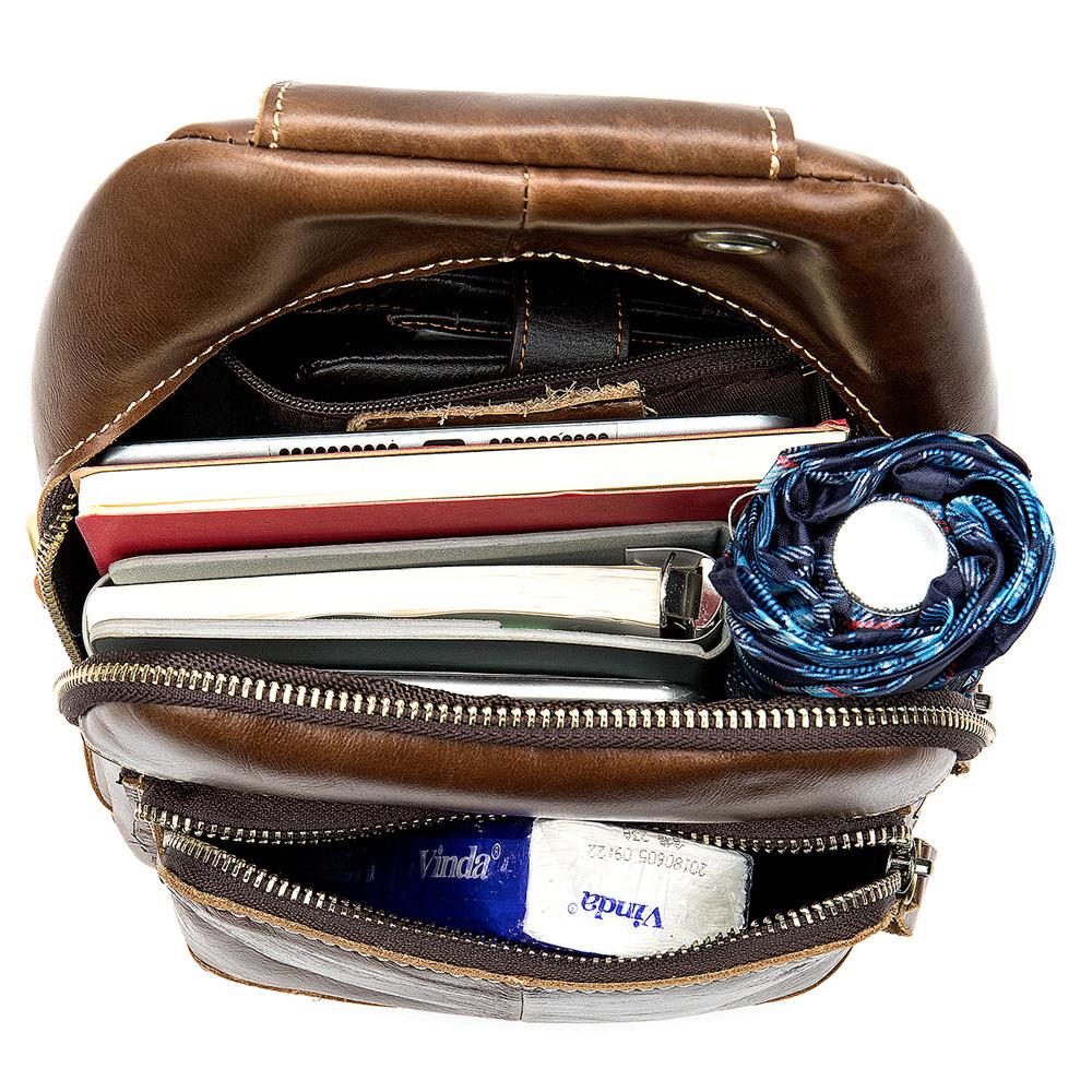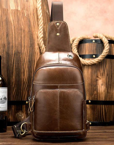 Style: Fashionable Brown Leather Men's Chest Bag Sling Bag One Shoulder Backpack For Men