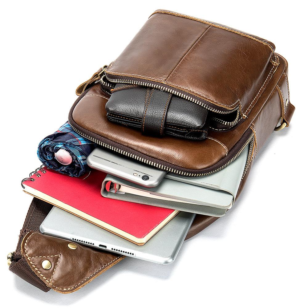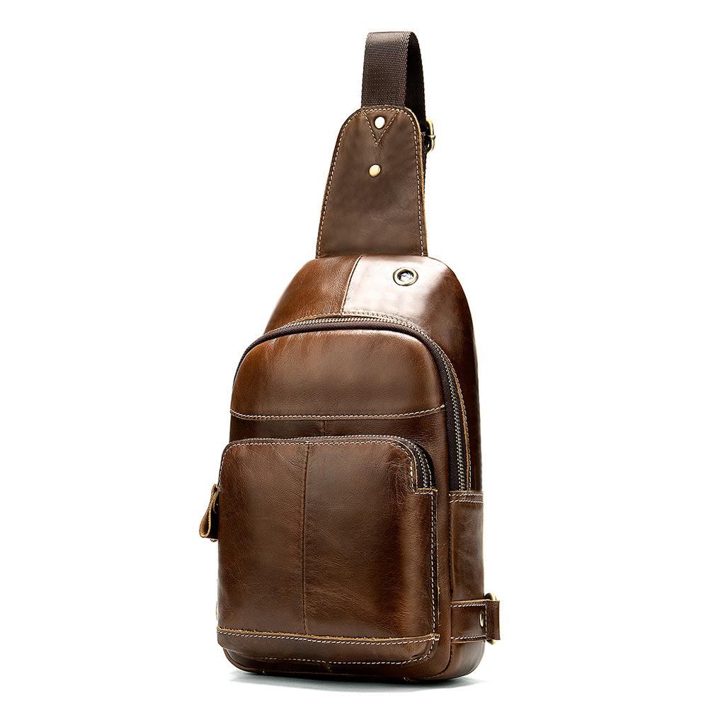 Design: Fashionable Brown Leather Men's Chest Bag Sling Bag One Shoulder Backpack For Men
