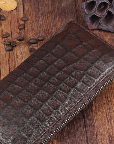 Design: Genuine Leather Mens Cool Long Leather Wallet Zipper Clutch Wallet for Men