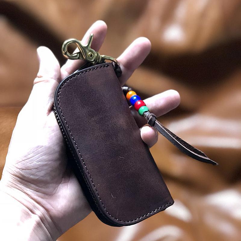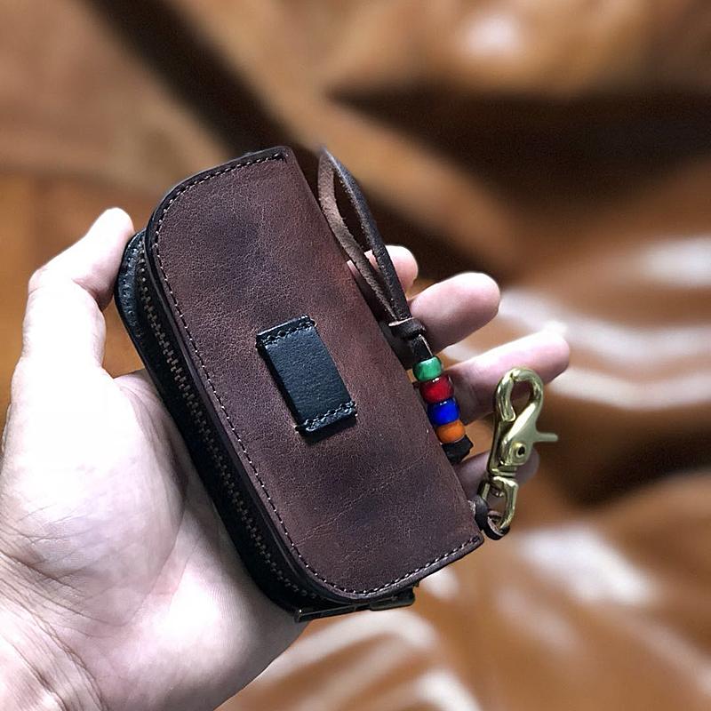 Design: Genuine Brown Leather Mens Cool Key Wallet Car Key Change Coin Holder Car Key Case for Men