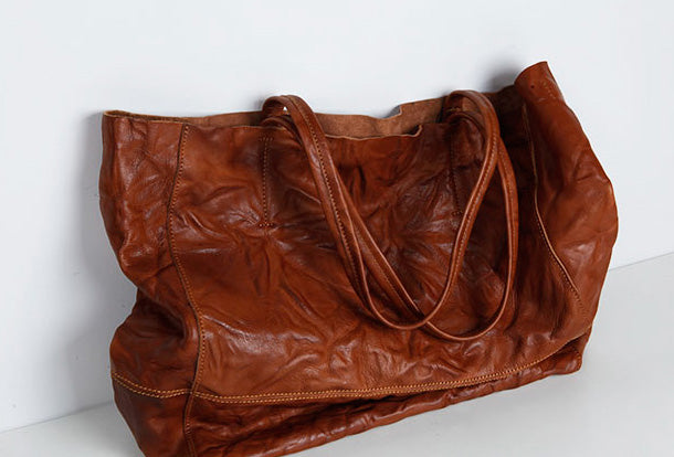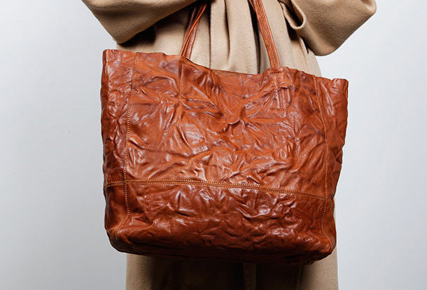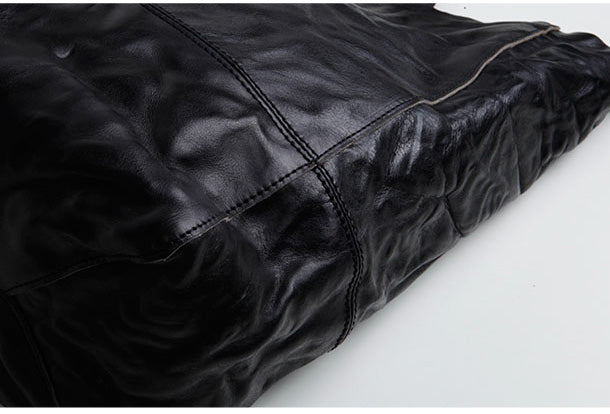 Genuine Leather Black Brown Handbag Large Tote Bag Wrinkled Shopper Bag Shoulder Bag Purse For Women