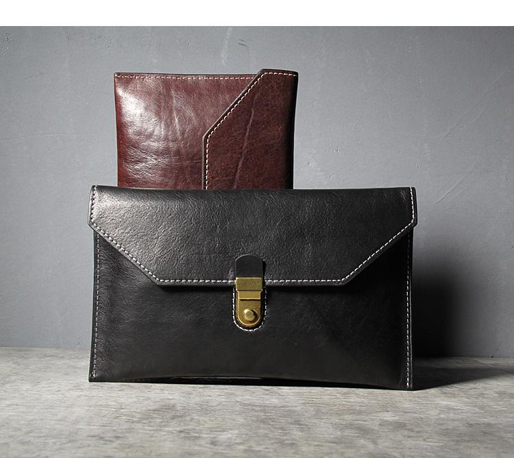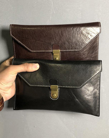 Design: Genuine Leather Black Mens 8 inches Clutch Bag Zipper Womens Brown Clutch Wallet Wristlet Wallet for Men