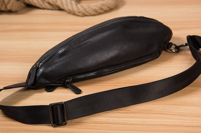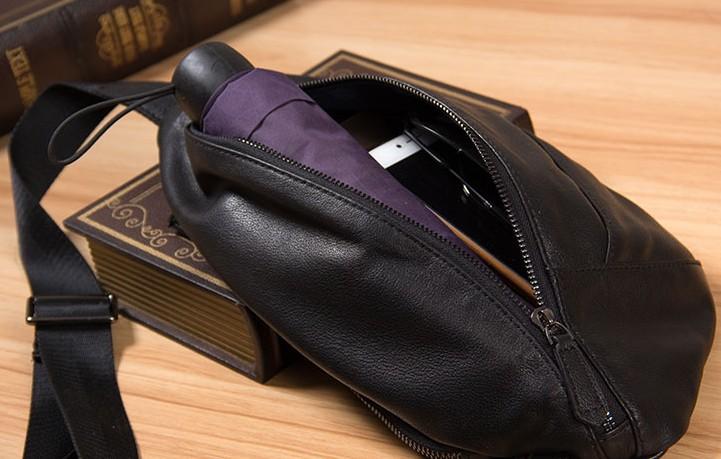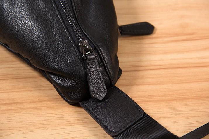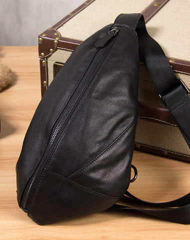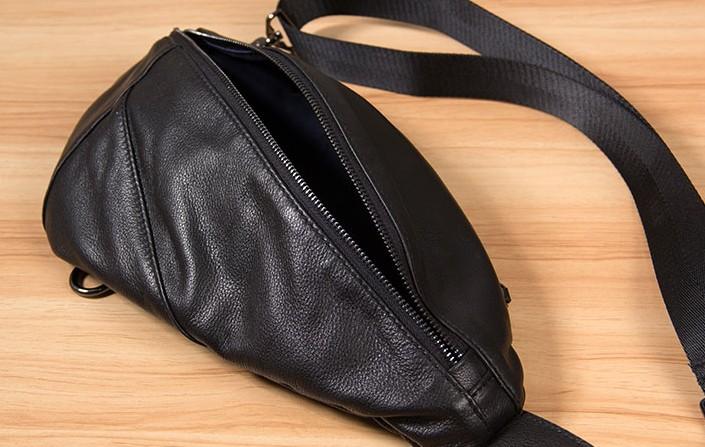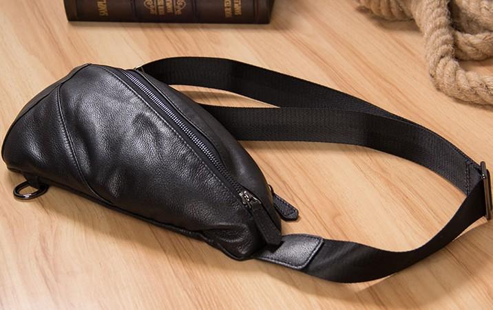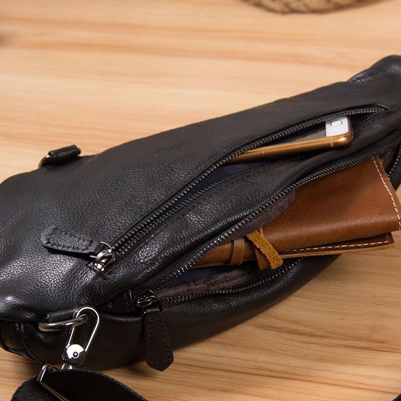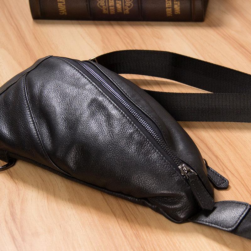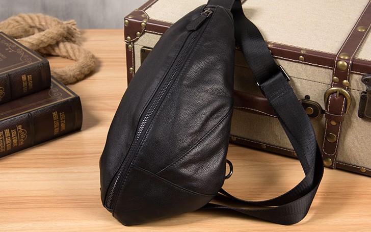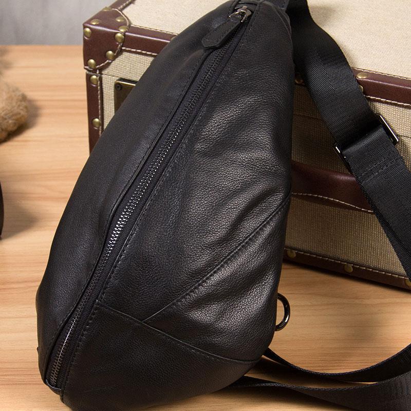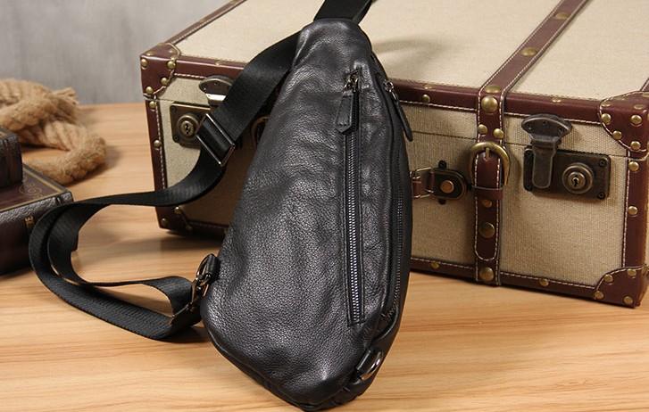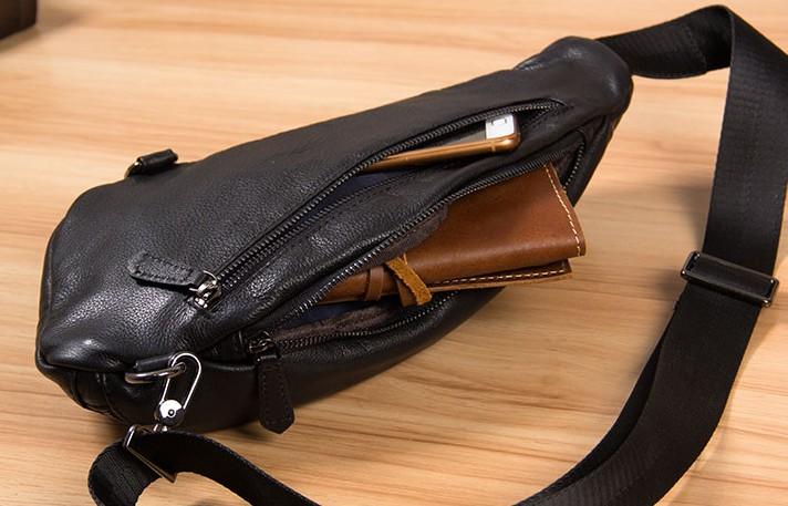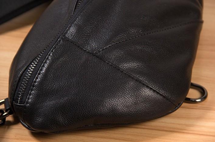 Style: Genuine Leather Black Mens Cool Sling Bag Crossbody Bag Chest Bag Travel Bag for men