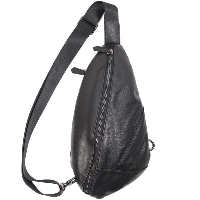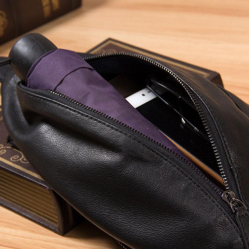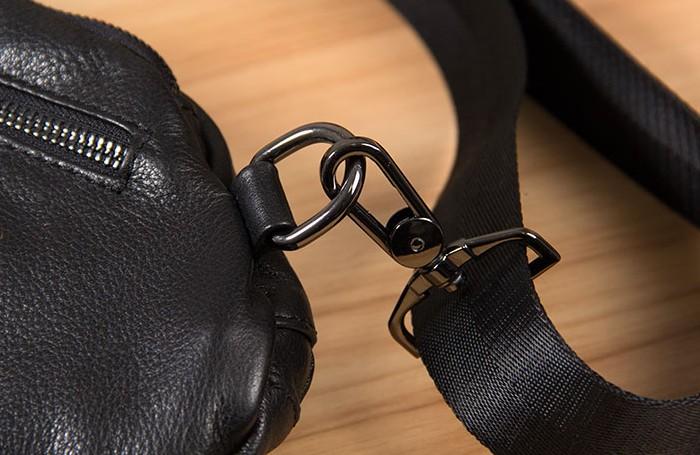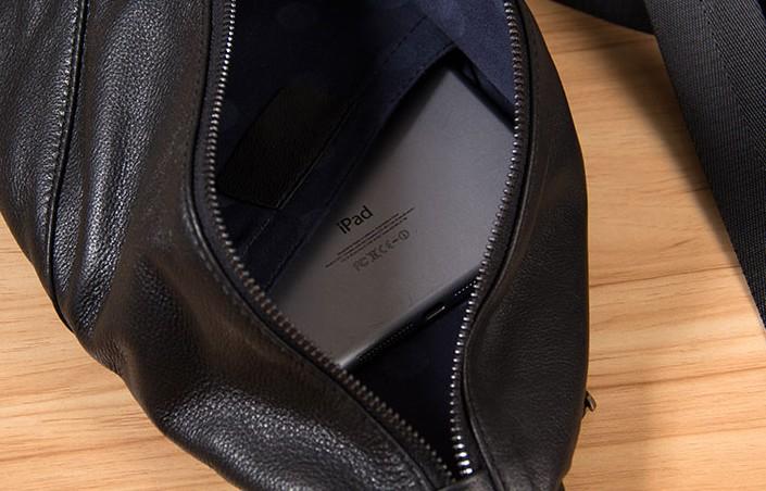 Design: Genuine Leather Black Mens Cool Sling Bag Crossbody Bag Chest Bag Travel Bag for men