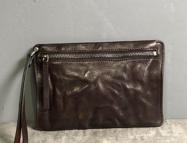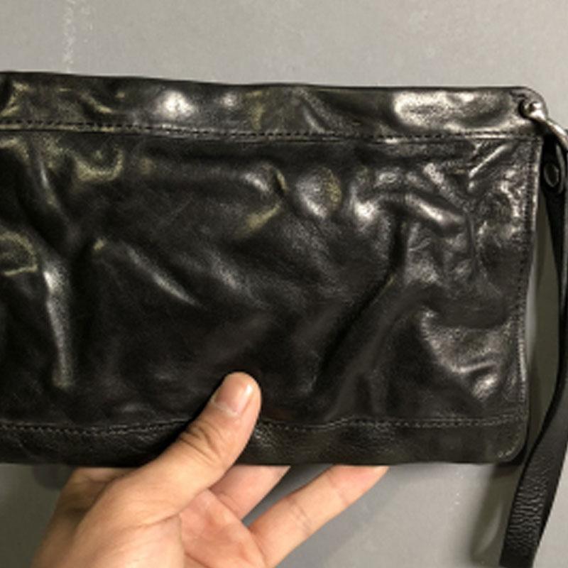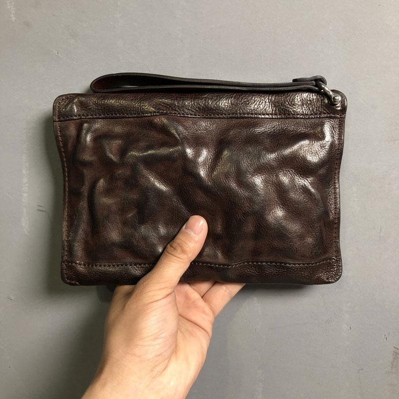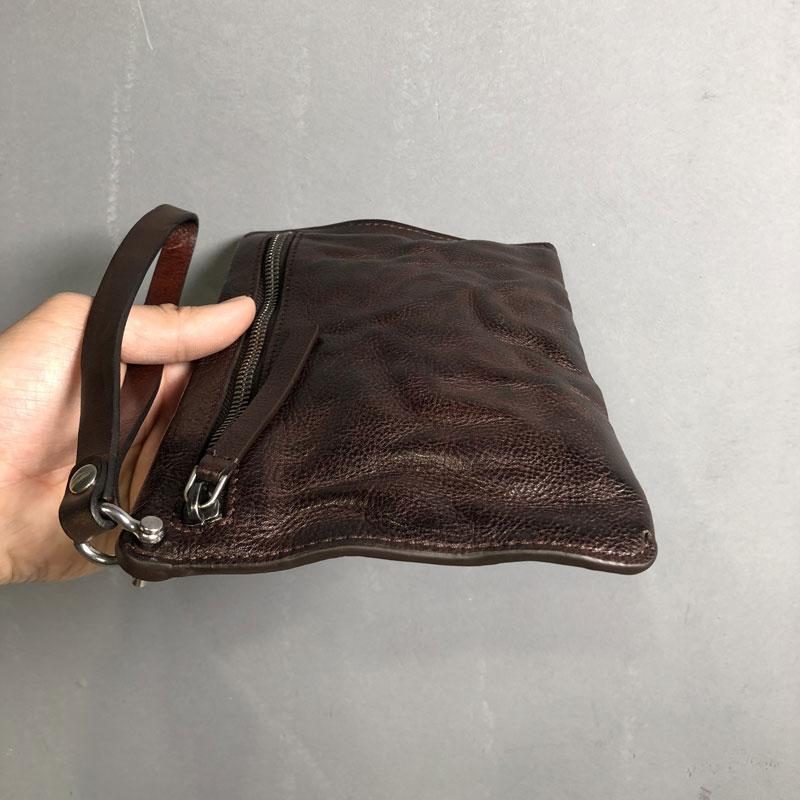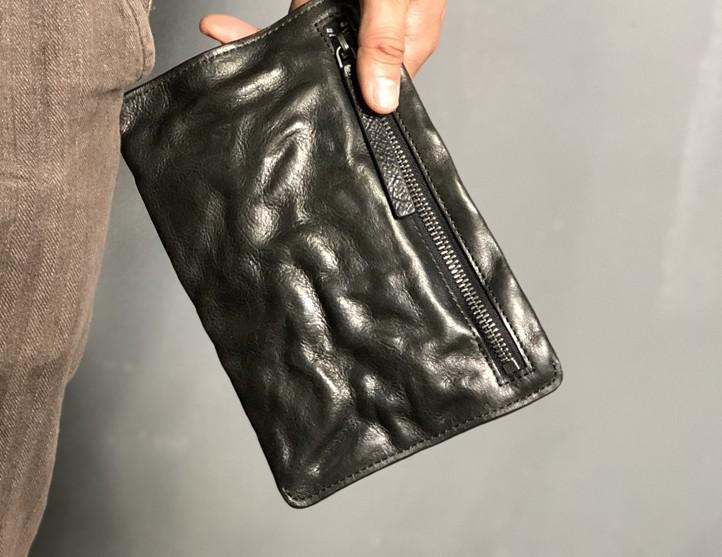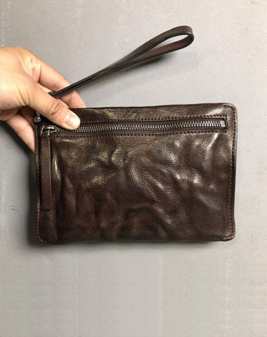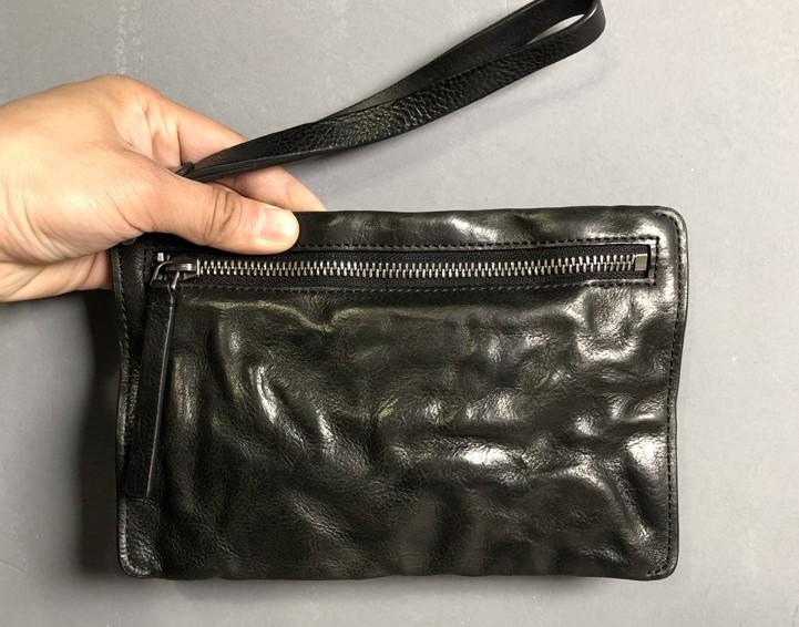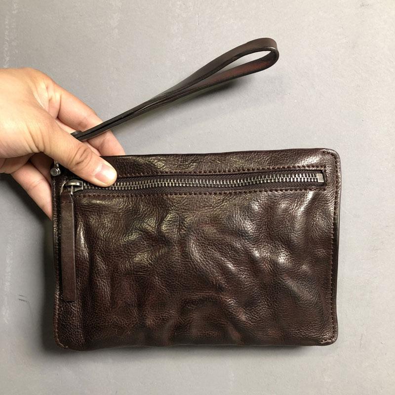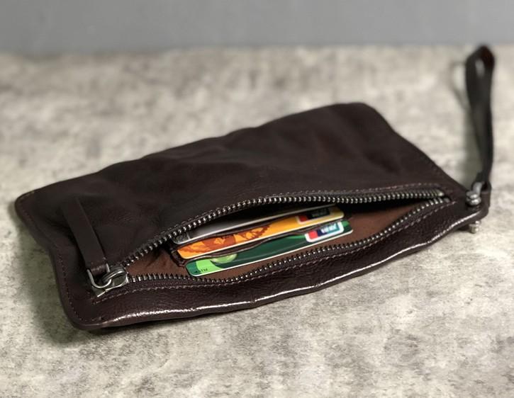 Design: Genuine Leather Mens Clutch Cool Slim Wallet Zipper Clutch Wristlet Wallet for Men