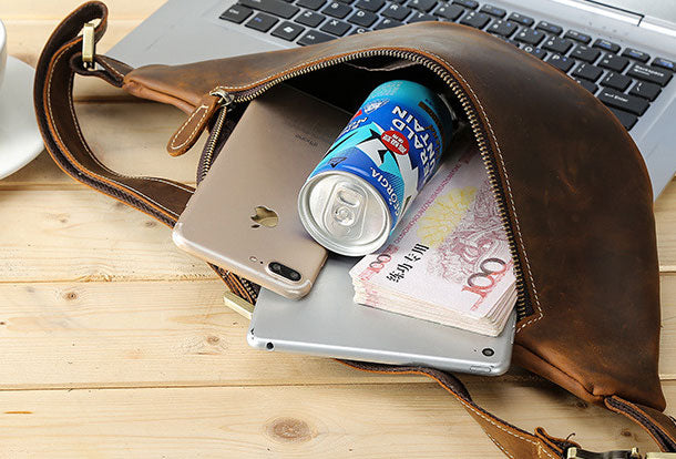 Design: Genuine Leather Belt Bag Chest Bag Sling Bag Waist Bag Crossbody Bag Travel Bag Hiking Bag For Mens