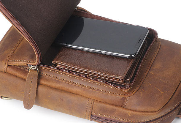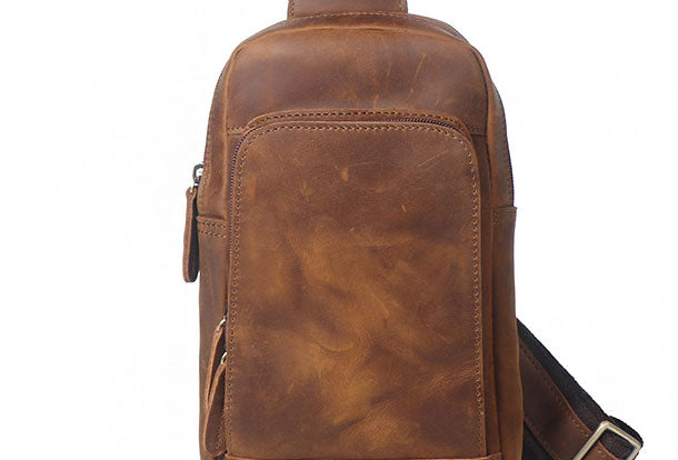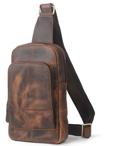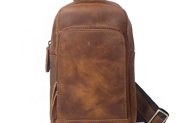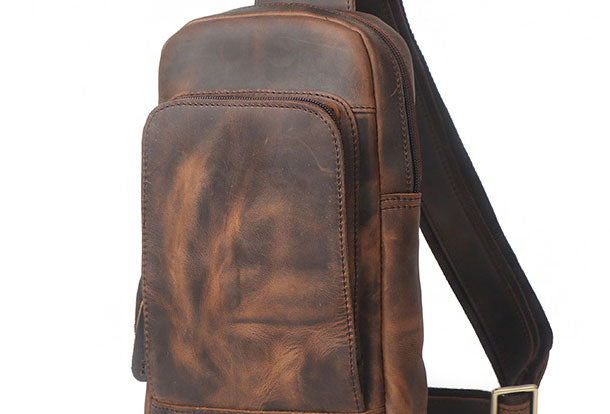 Style: Cool Mens Leather Chest Bag Leather Sling Bag Leather Sling pack Crossbody Sling bag For Men