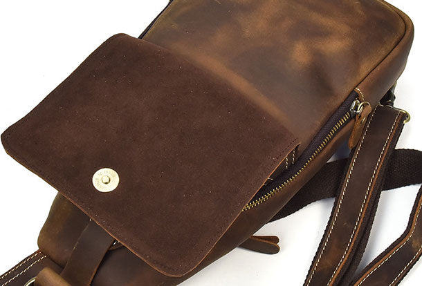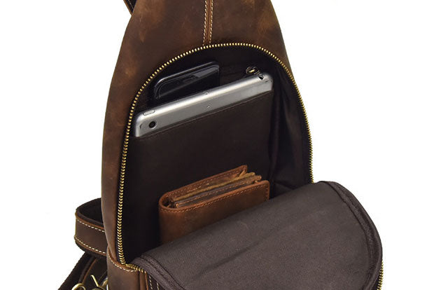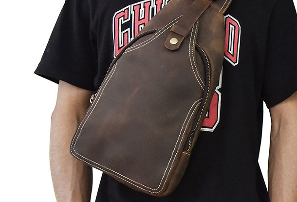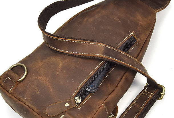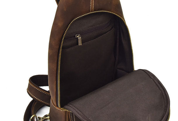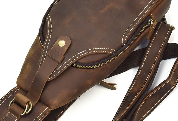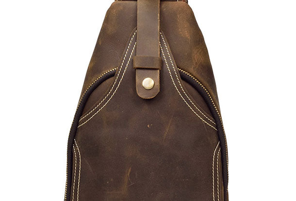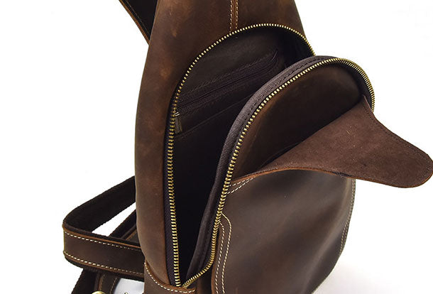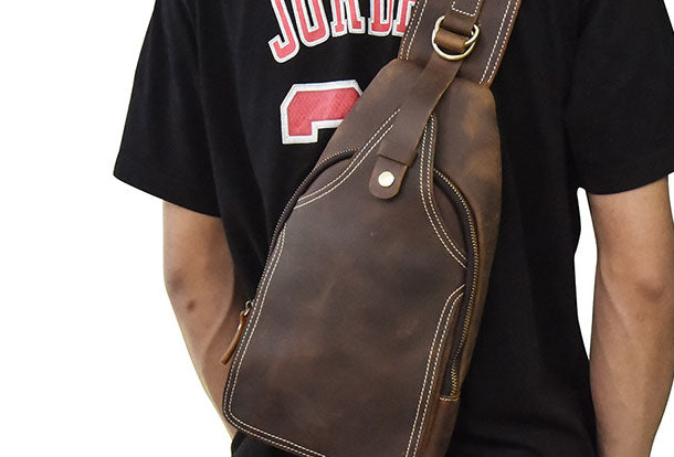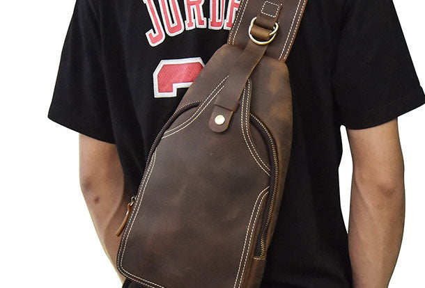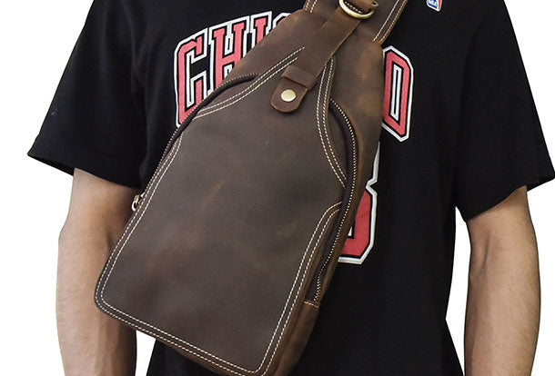 Design: Genuine Leather Cool Chest Bag Sling Bag One Shoulder Backpack For Men