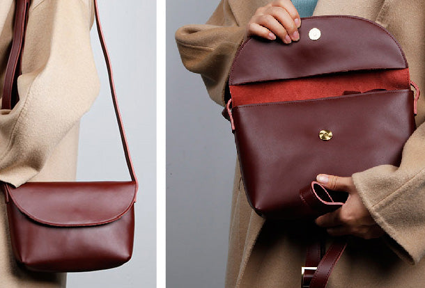 Design: Genuine Leather Cute Round Crossbody Bag Shoulder Bag Women Leather Purse