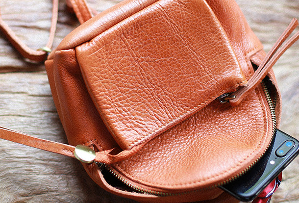 Style: Genuine Leather Cute Small Backpack Bag Shoulder Bag Black Women Leather Purse