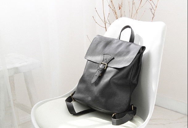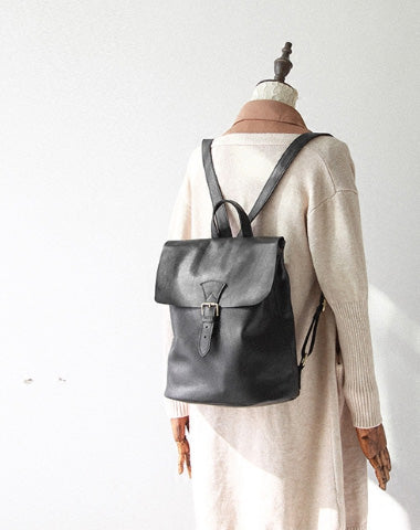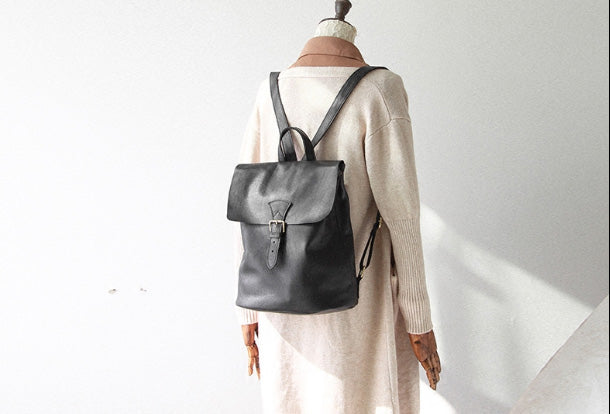 Style: Genuine Leather Cute Small Backpack Bag Shoulder Bag Black Women Leather Purse