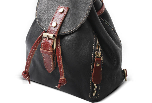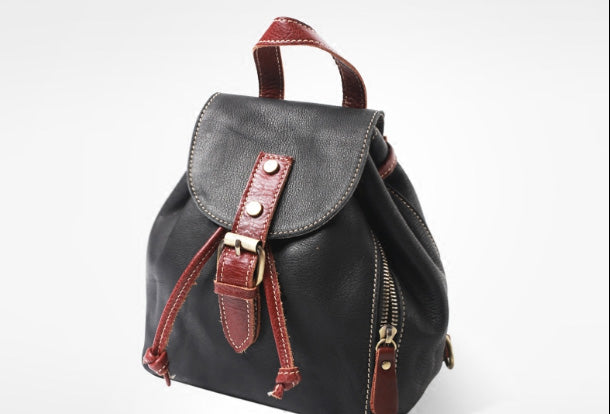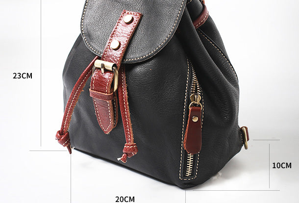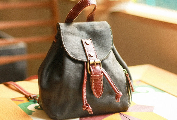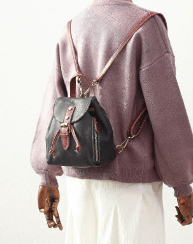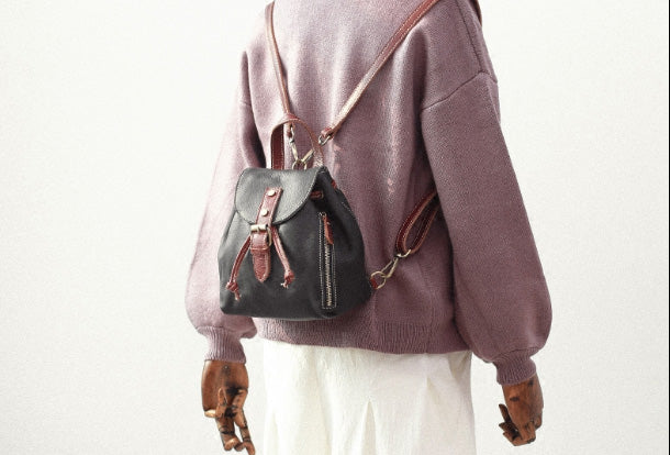 Style: Genuine Leather Cute Small Backpack Bag Shoulder Bag Black Women Leather Purse