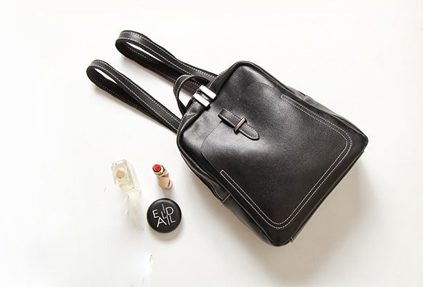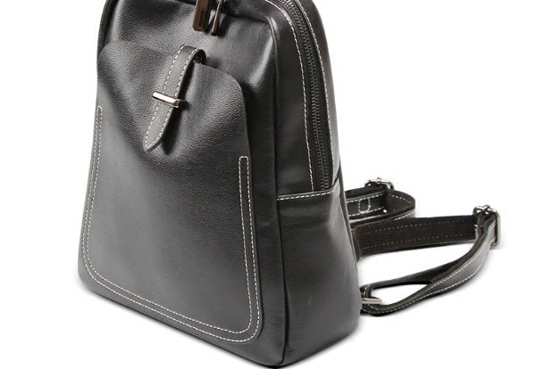 Design: Genuine Leather Cute Small Backpack Bag Shoulder Bag Black Women Leather Purse