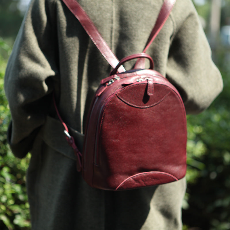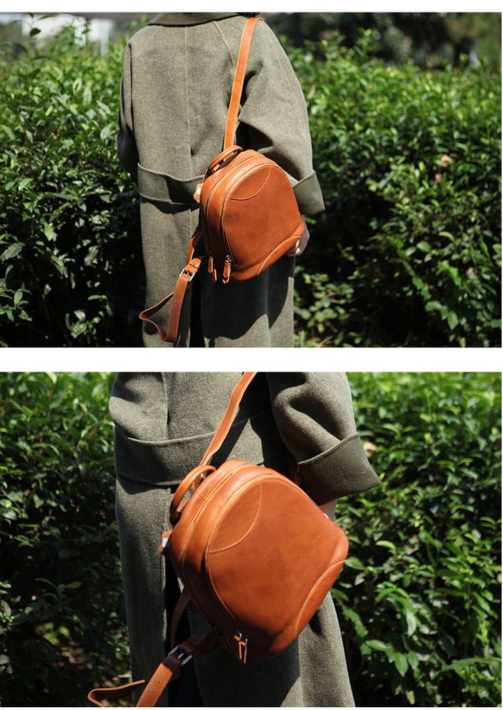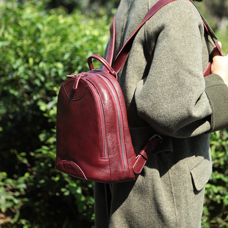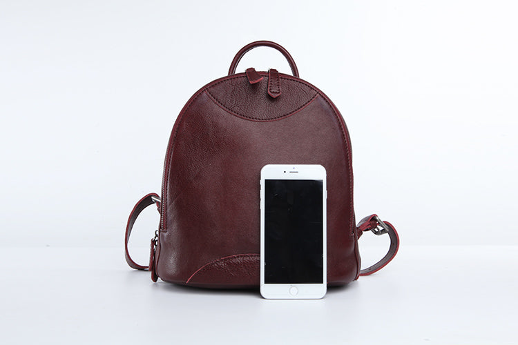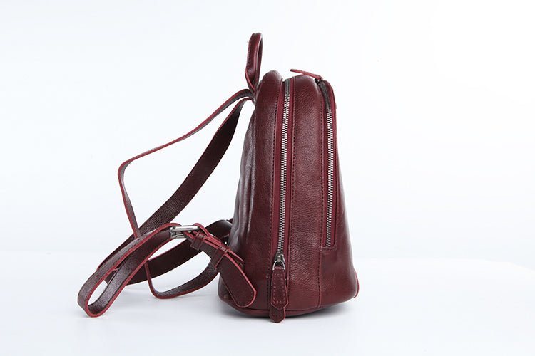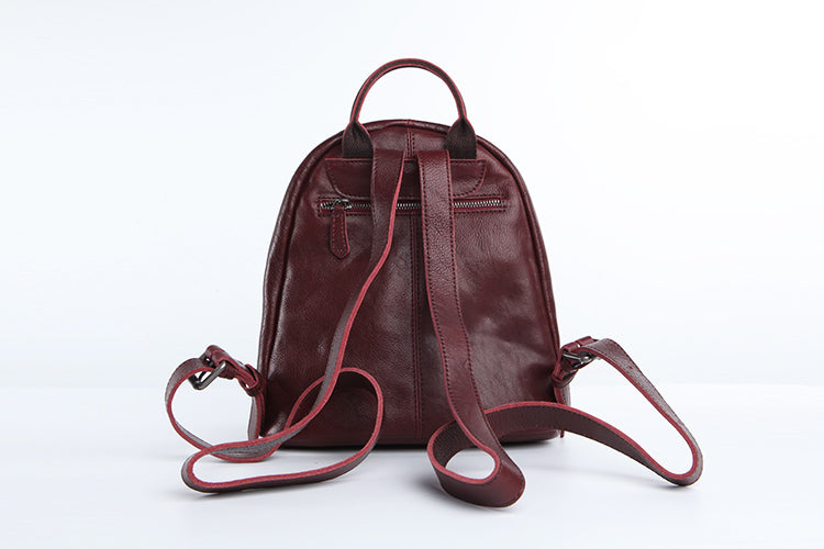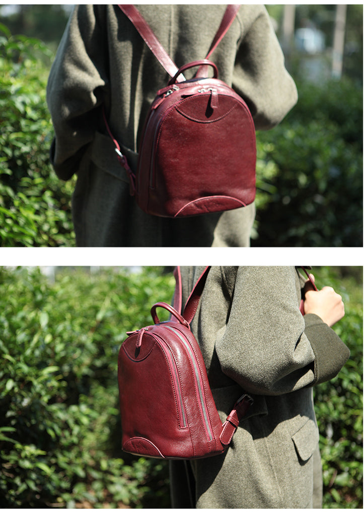 Design: Genuine Leather Cute Women Backpack Bag Shoulder Bag Red Brown Leather Purse