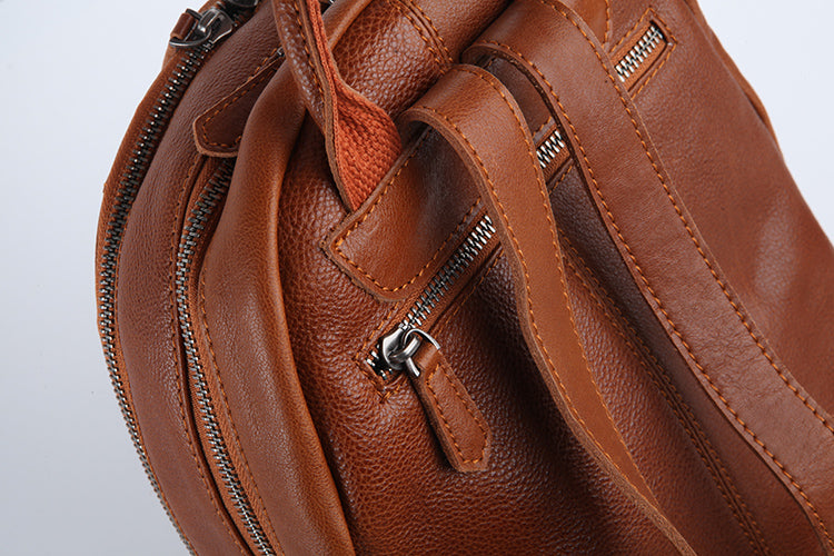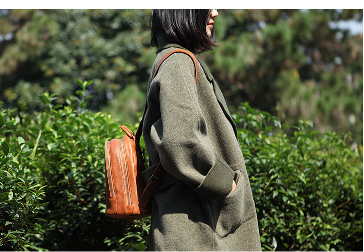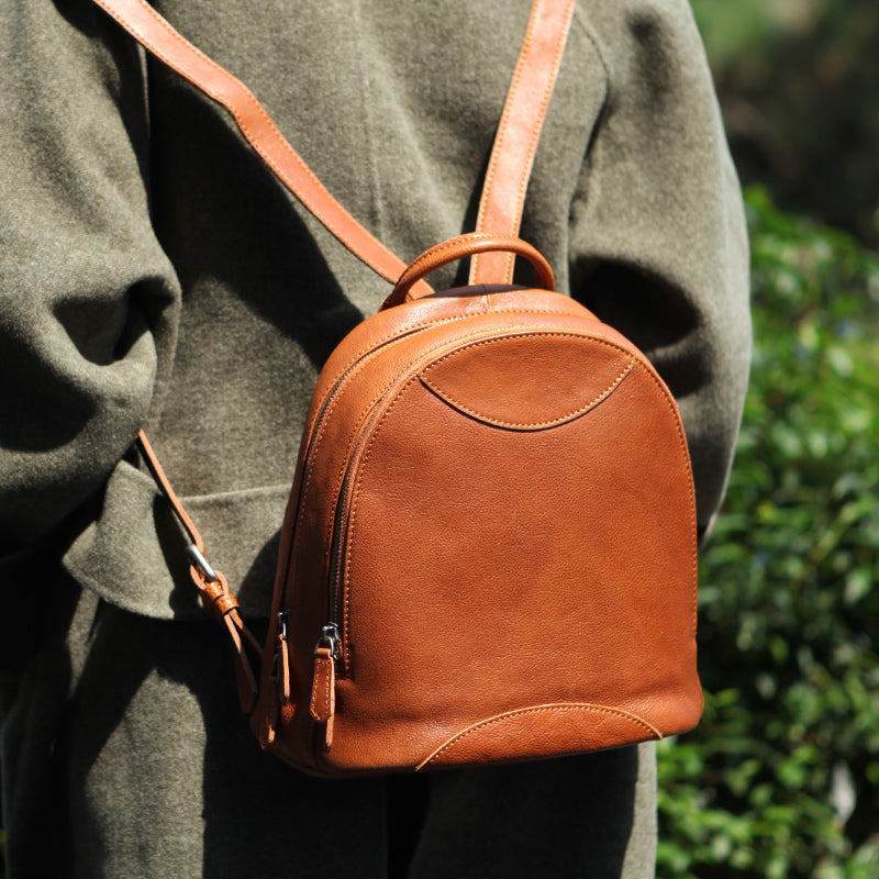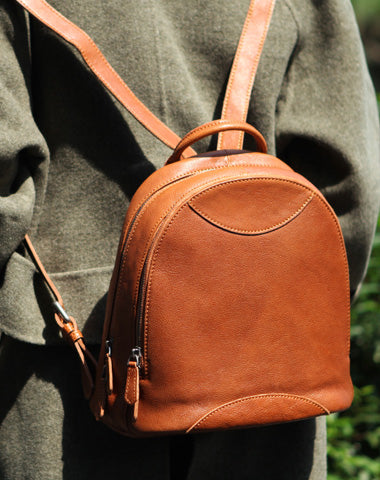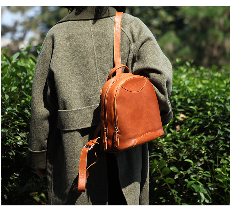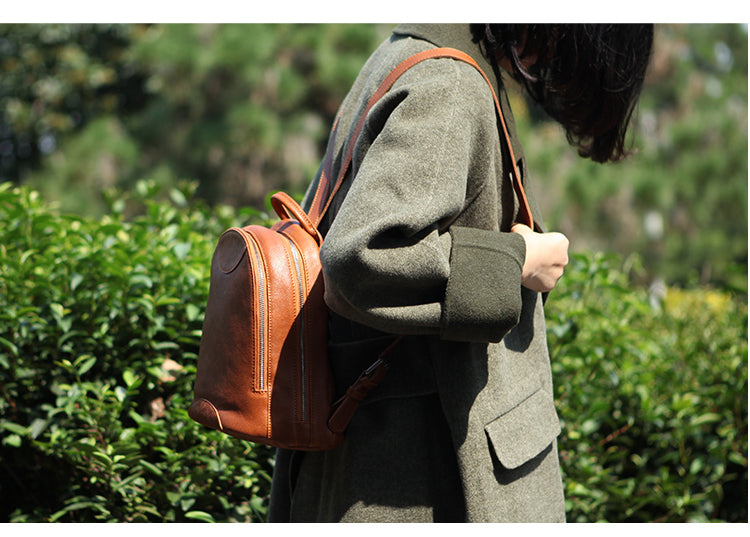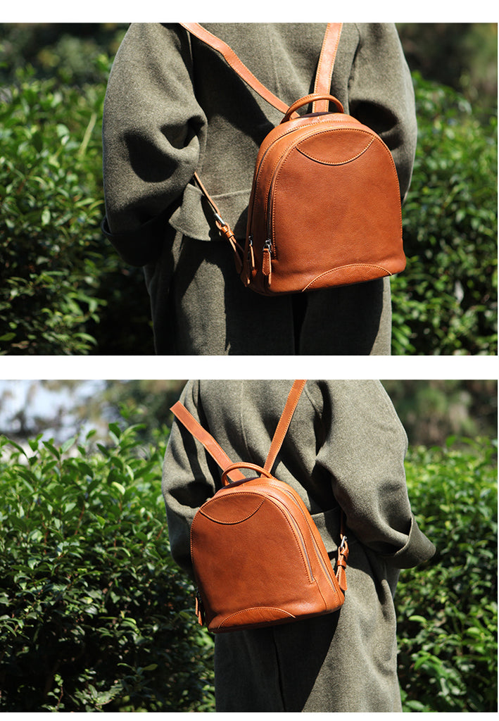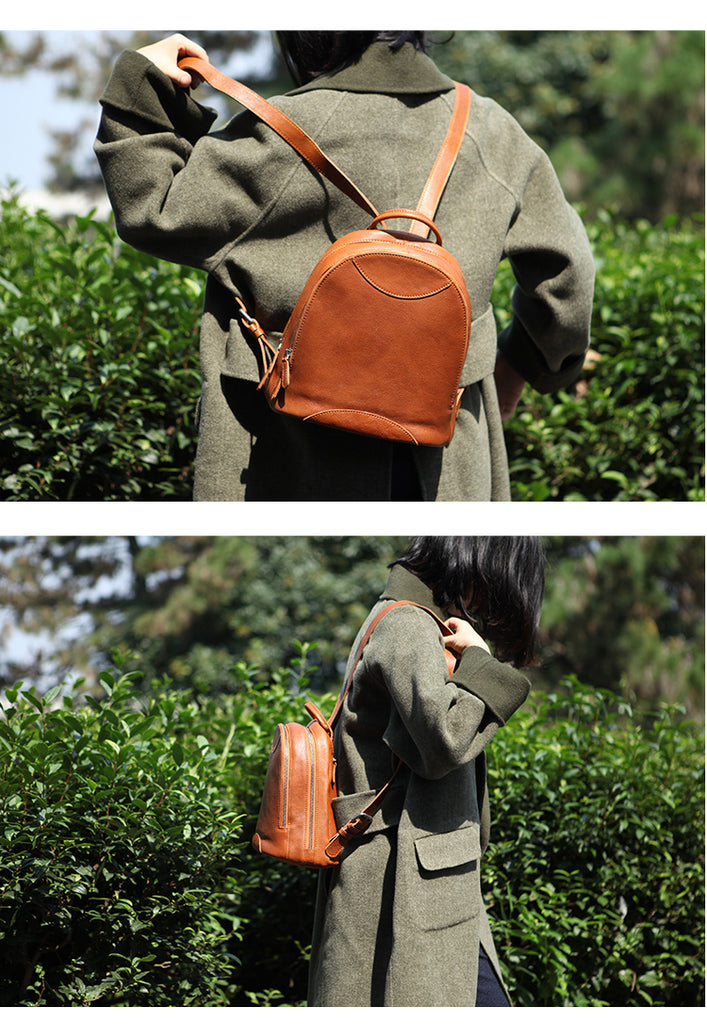 Design: Genuine Leather Cute Women Backpack Bag Shoulder Bag Red Brown Leather Purse
