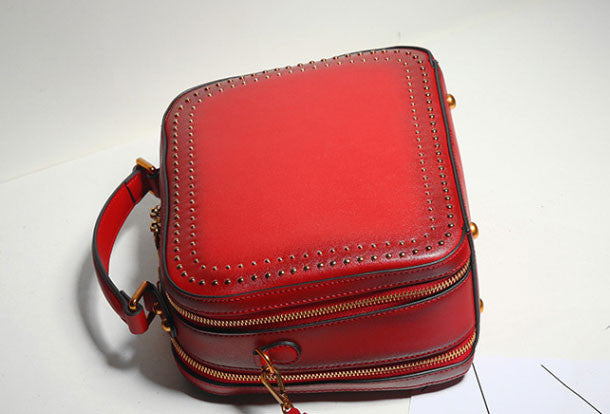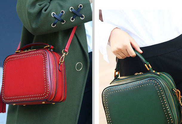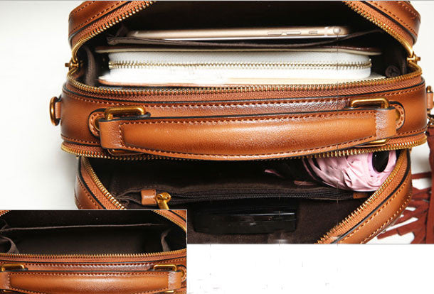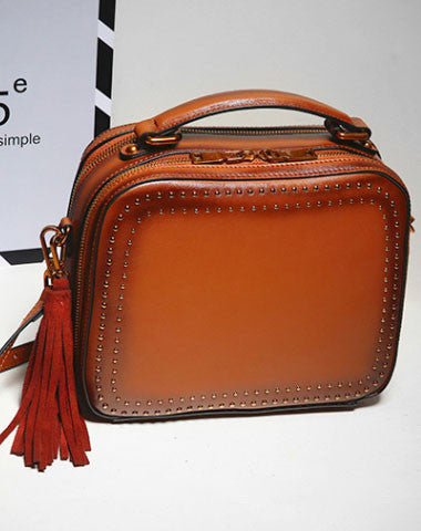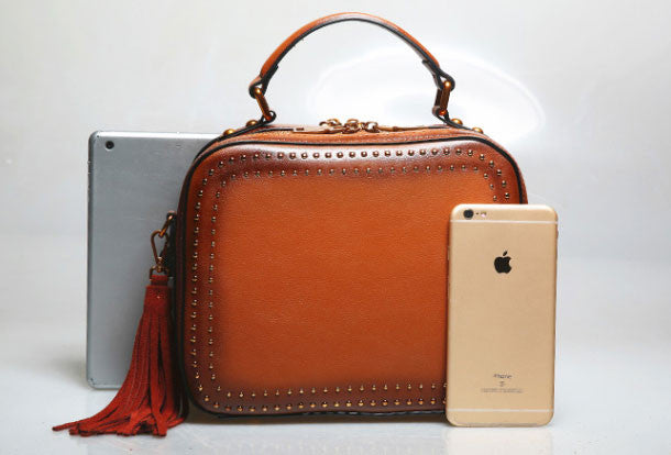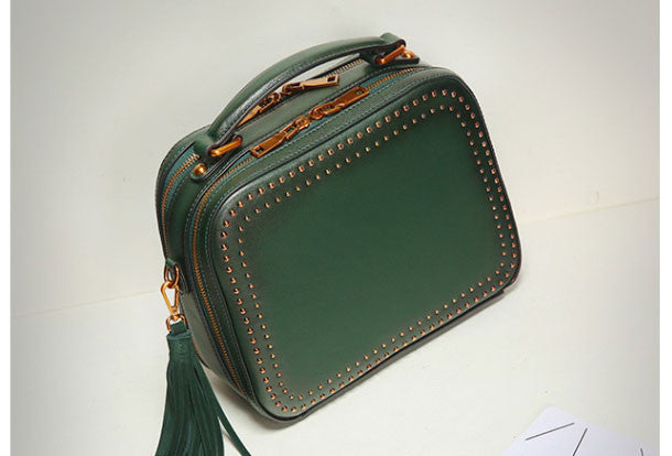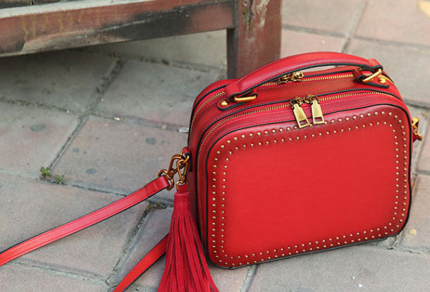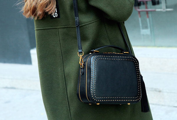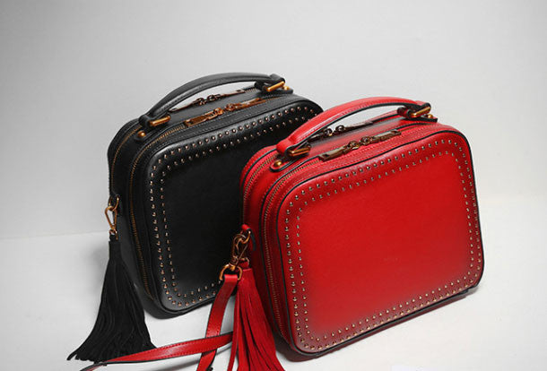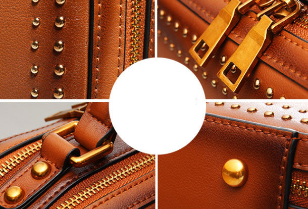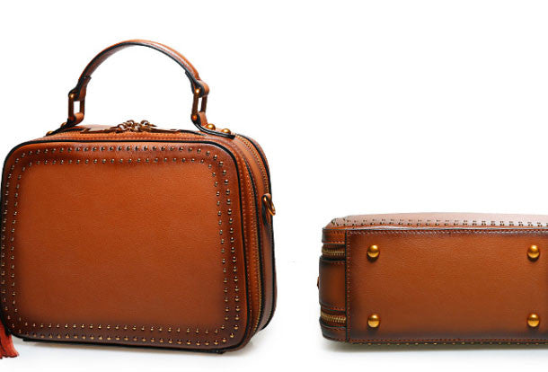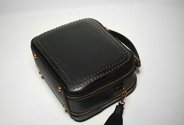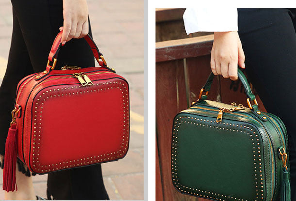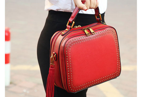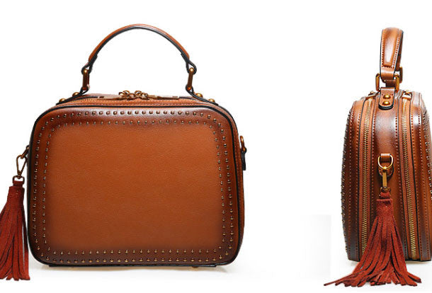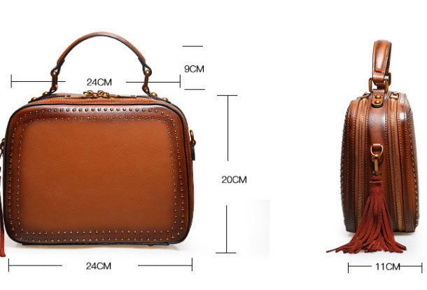 Design: Vintage Leather Women Shoulder Bag rivet Handbag tassels