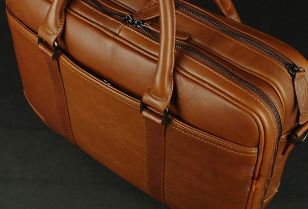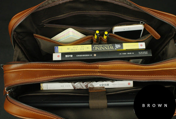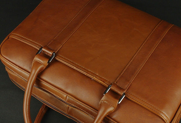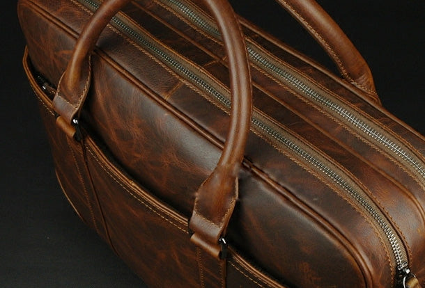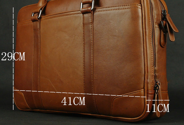 Design: Genuine leather men Briefcase messenger large vintage shoulder laptop bag vintage bag