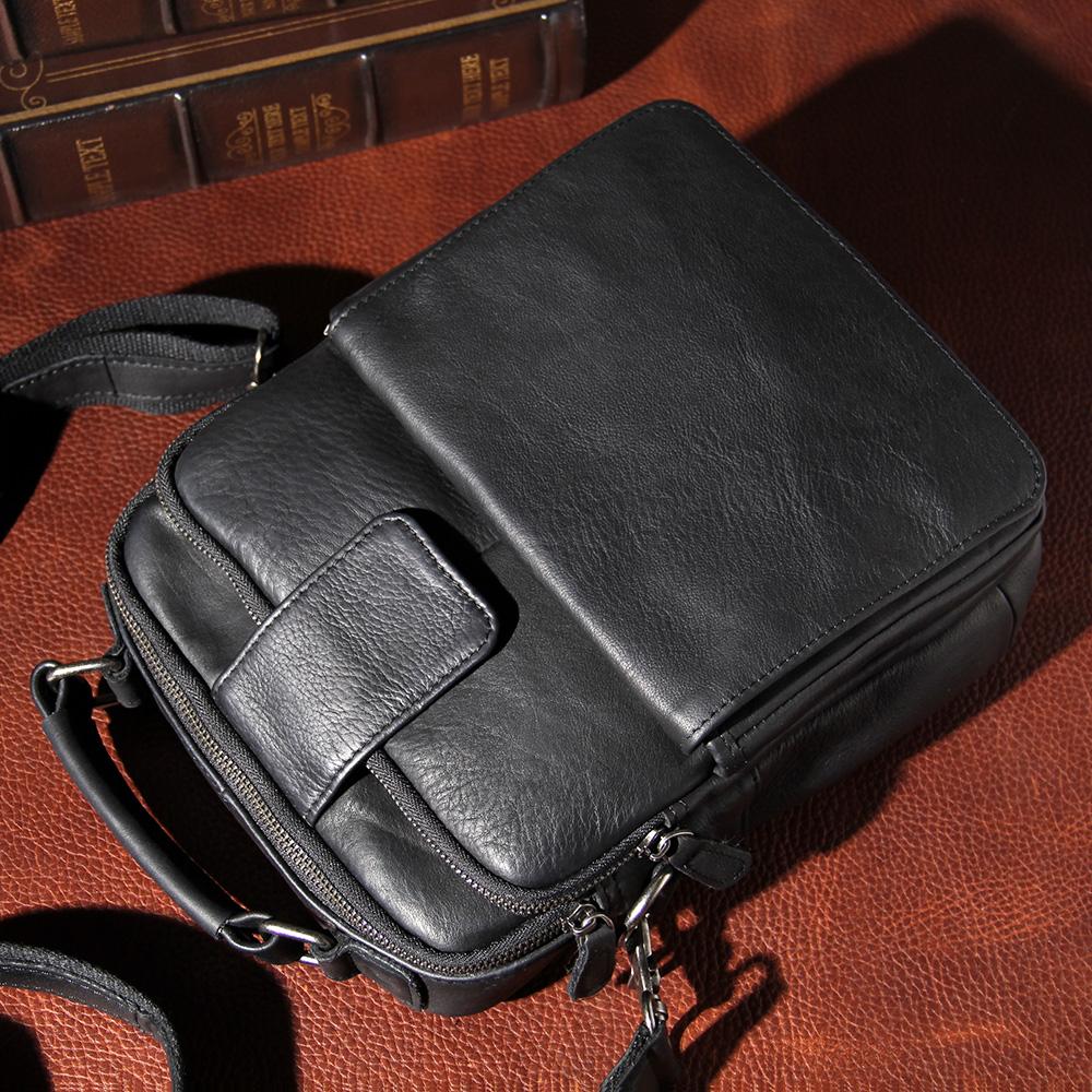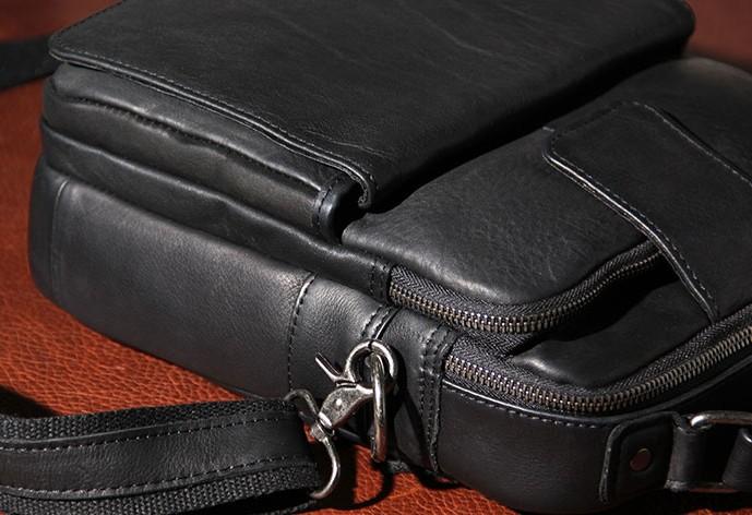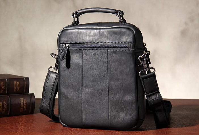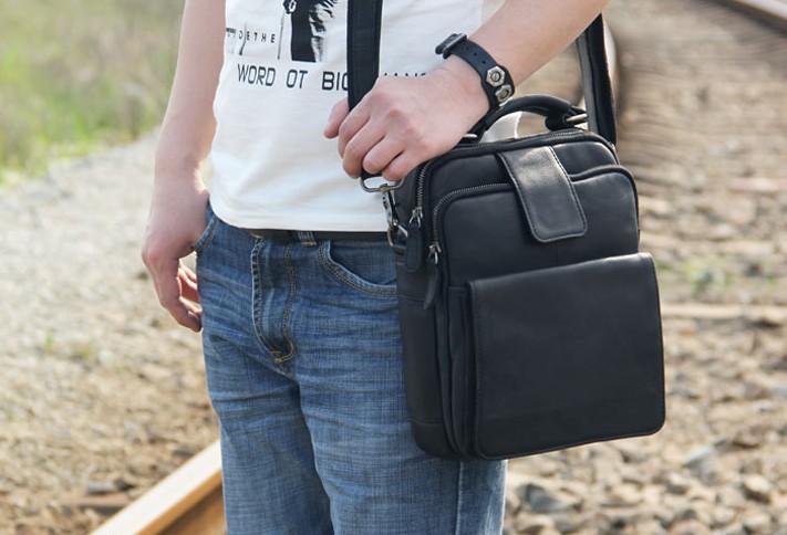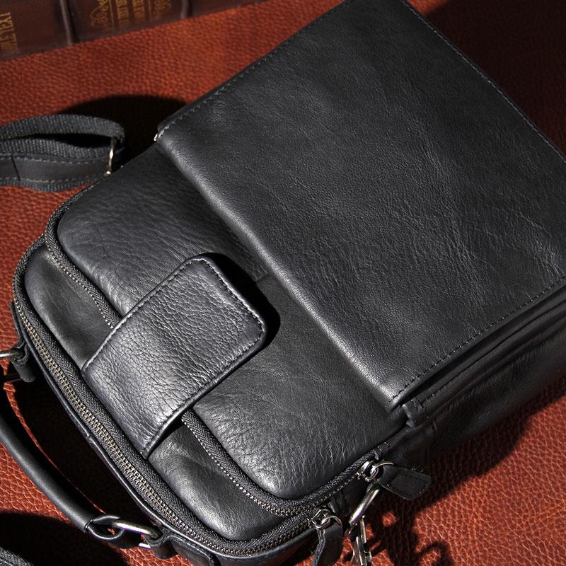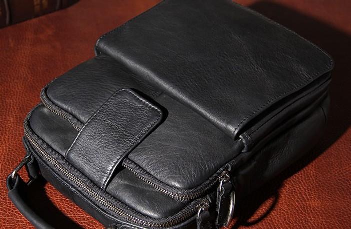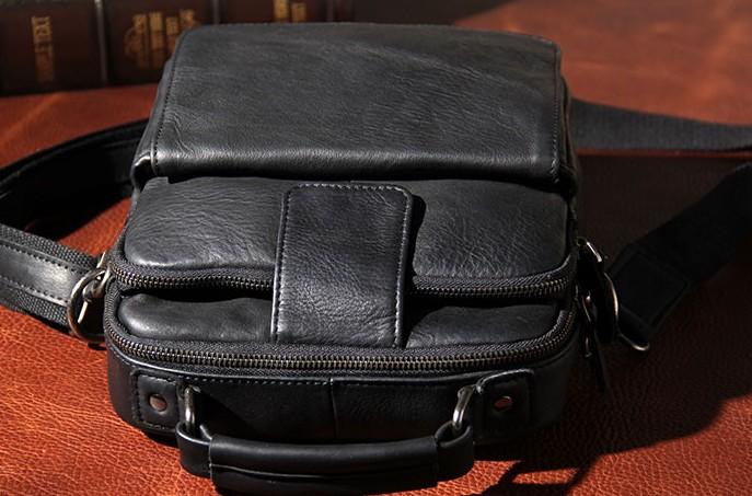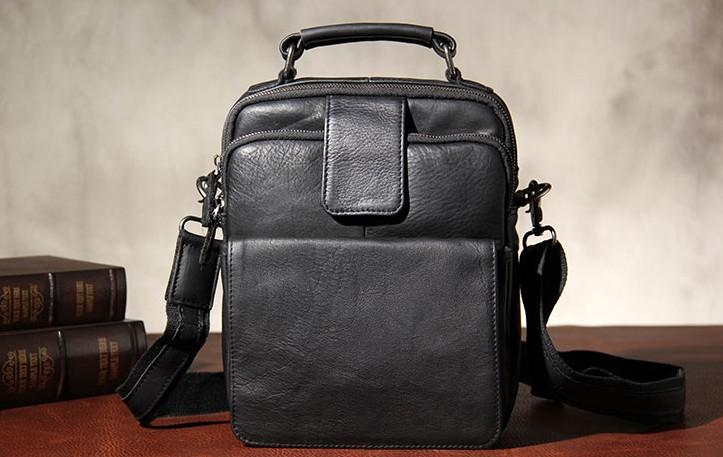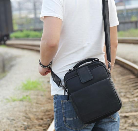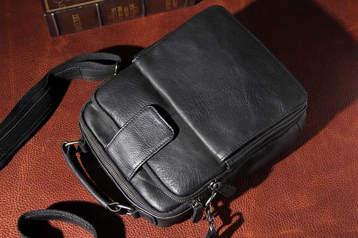 Design: Black Leather Mens Small Shoulder Bag Messenger Bag Crossbody Bag for Men