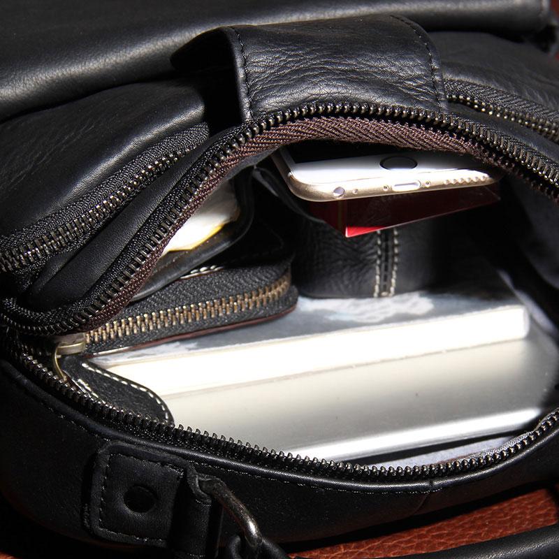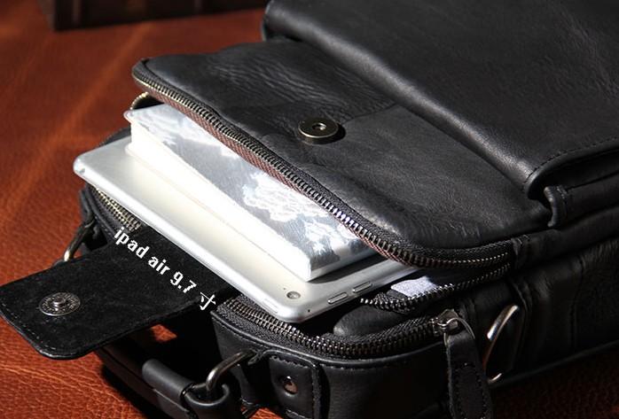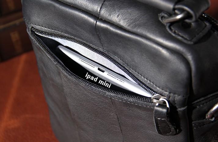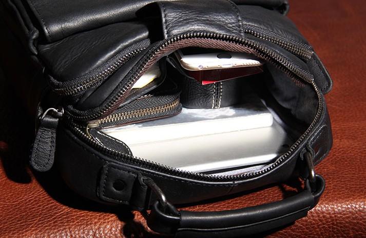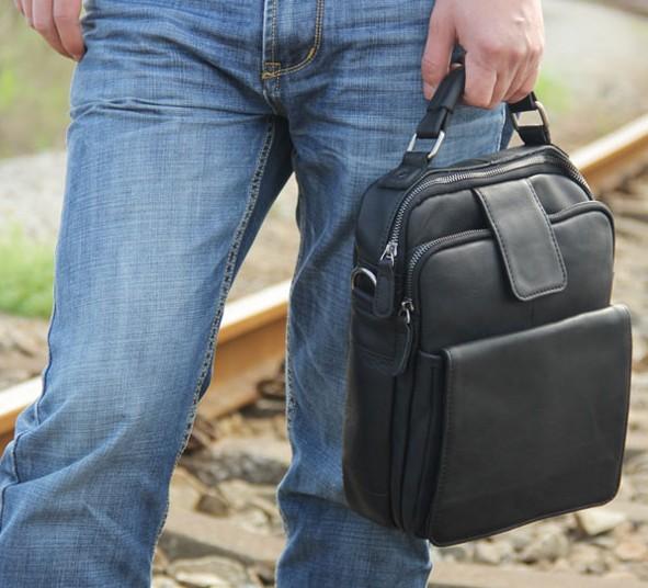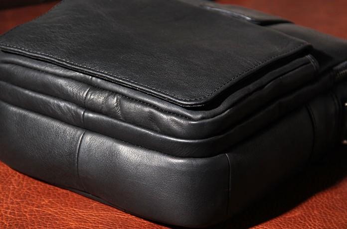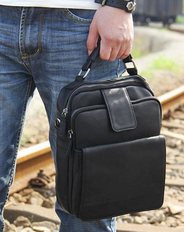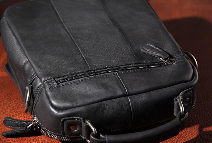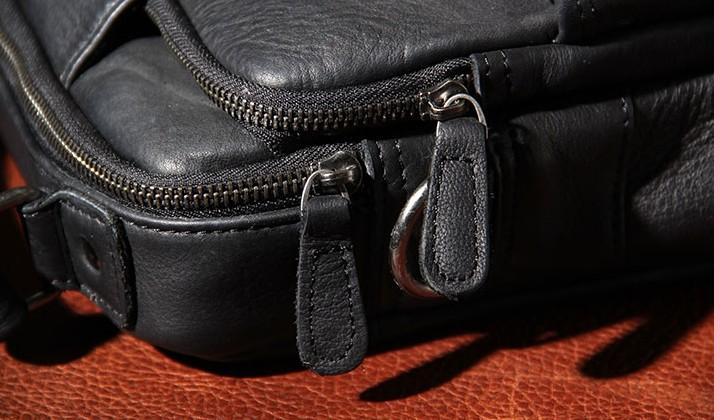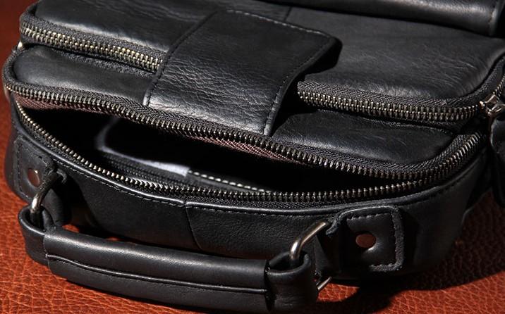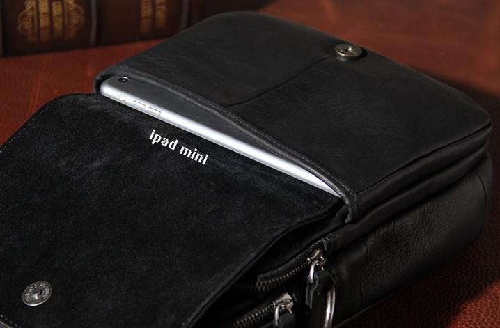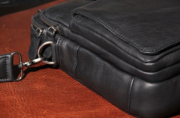 Design: Black Leather Mens Small Shoulder Bag Messenger Bag Crossbody Bag for Men