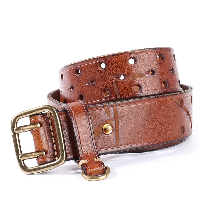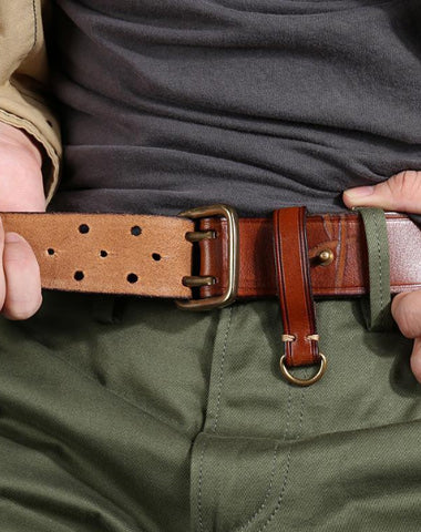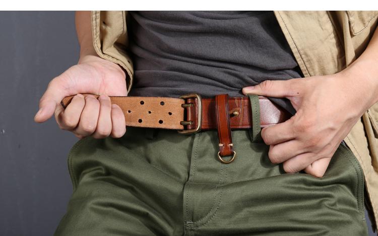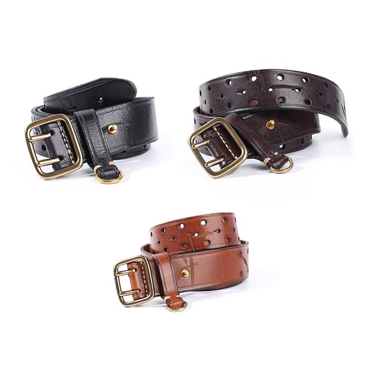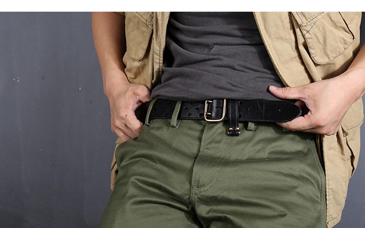 Handmade Leather Mens Casual Black Belt Double Holes Belt Brown Belt For Men