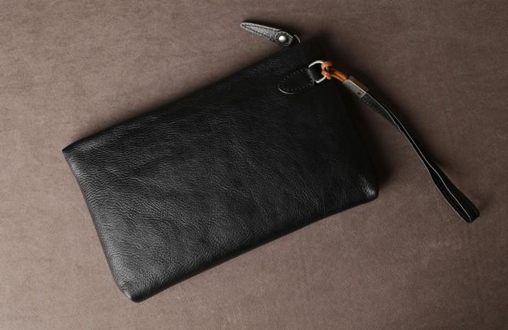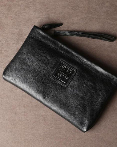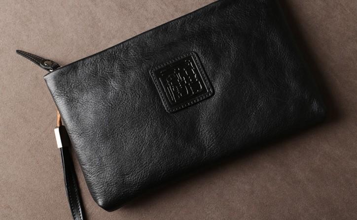 Design: Genuine Leather Mens Clutch Cool Slim Wallet Zipper Clutch Wristlet Bag Wallet for Men Women