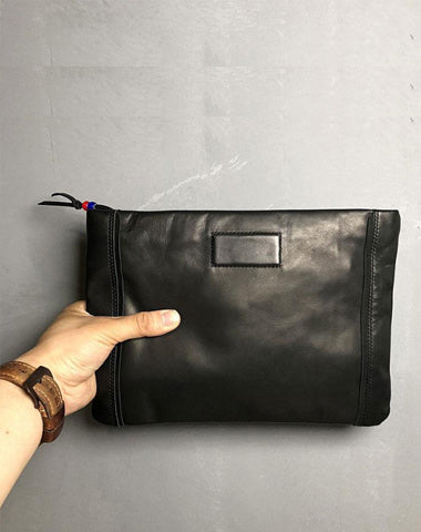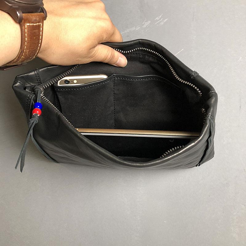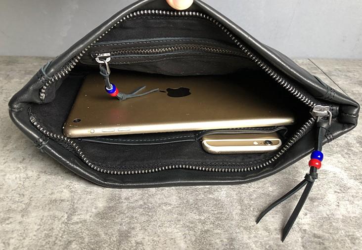 Design: Genuine Leather Mens Clutch Cool Slim Wallet Zipper Clutch Wristlet Wallet for Men