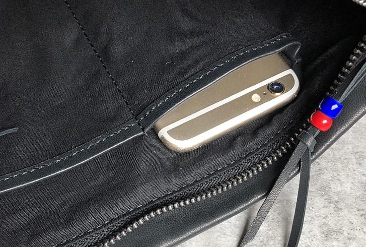 Slots: 1 phone slot, 1 wallet slot, 1 phone slot, 1 zipper slot