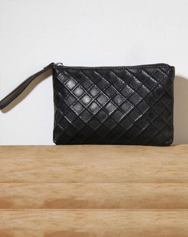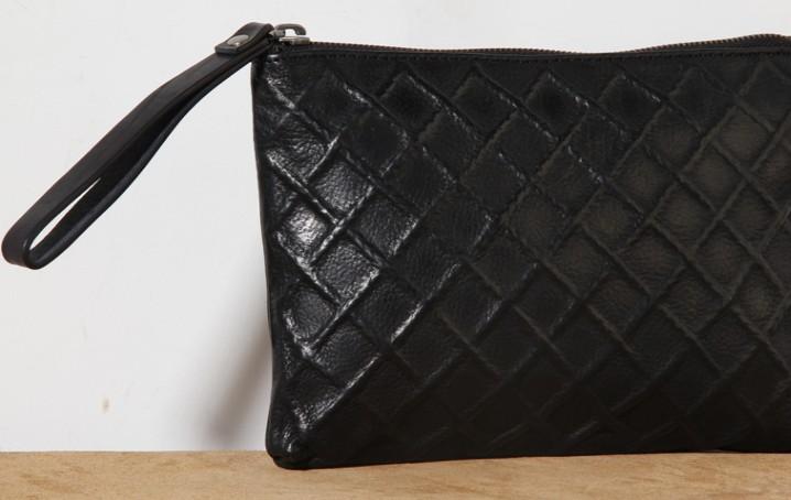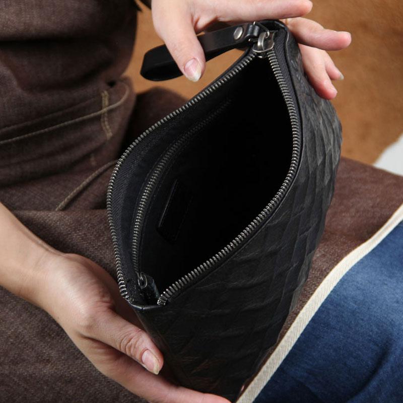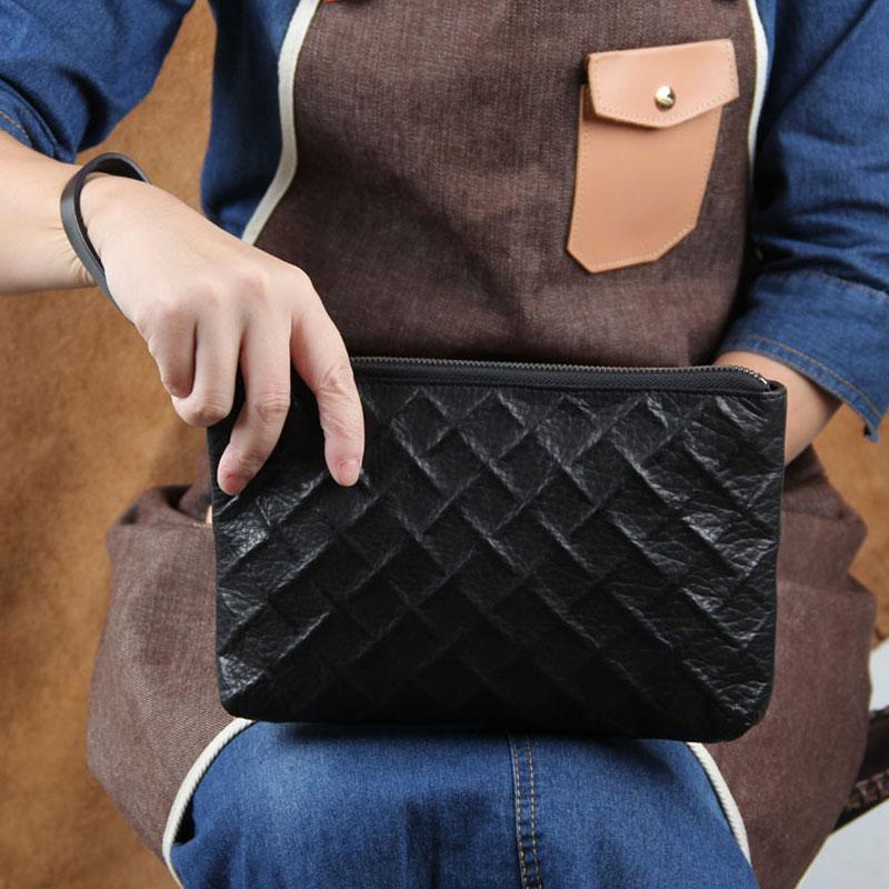 Design: Genuine Leather Braided Mens Clutch Cool Slim Wallet Zipper Clutch Wristlet Wallet for Men